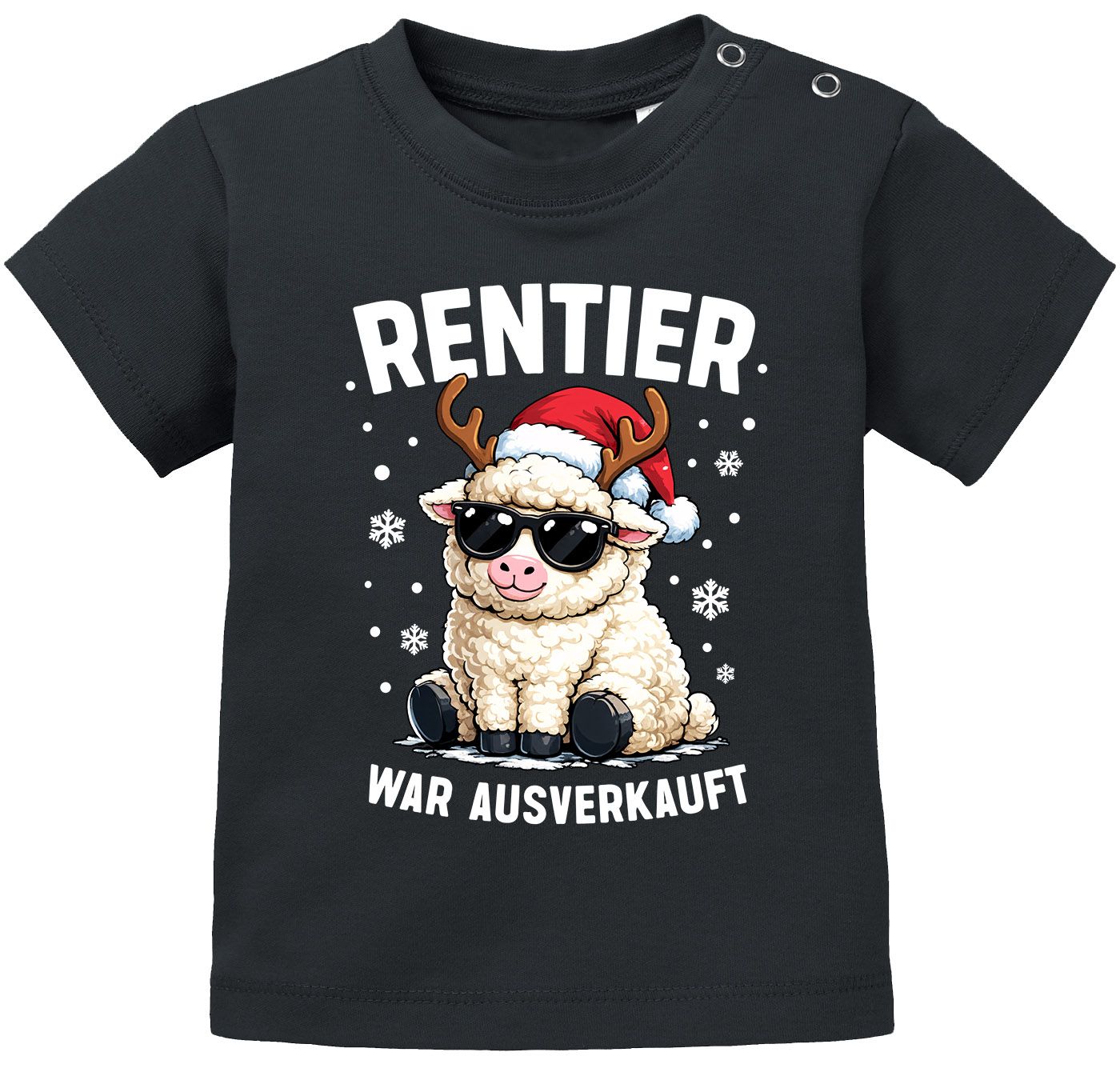 - Baby-Weihnachtsshirt mit „Rentier war ausverkauft“-Print und Tiermotiv (Hund, Katze, Schaf, Mops, Capybara). Perfekt als Geschenk oder festliches Baby-Outfit.ideal als erstes Weihnachtsoutfit und perfekt für unvergessliche Babyfotos zum Heiligabend