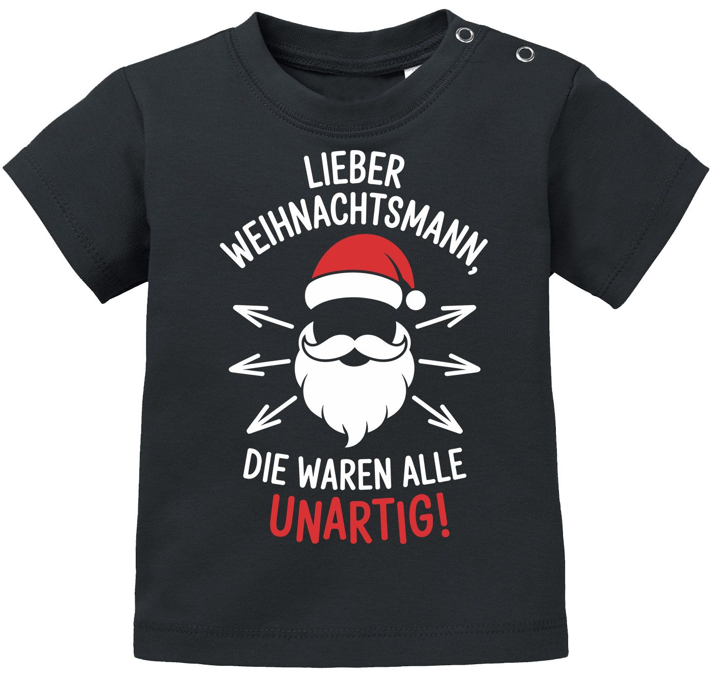- Süßes Babyshirt mit frechem Weihnachts-Spruch „Lieber Weihnachtsmann, die waren alle unartig!“ – perfektes XMAS-Outfit für Babys, ideal für Weihnachtsfotos, Nikolausfeiern und als lustiges Baby-Geschenk für Eltern und kleine Weihnachtsfans