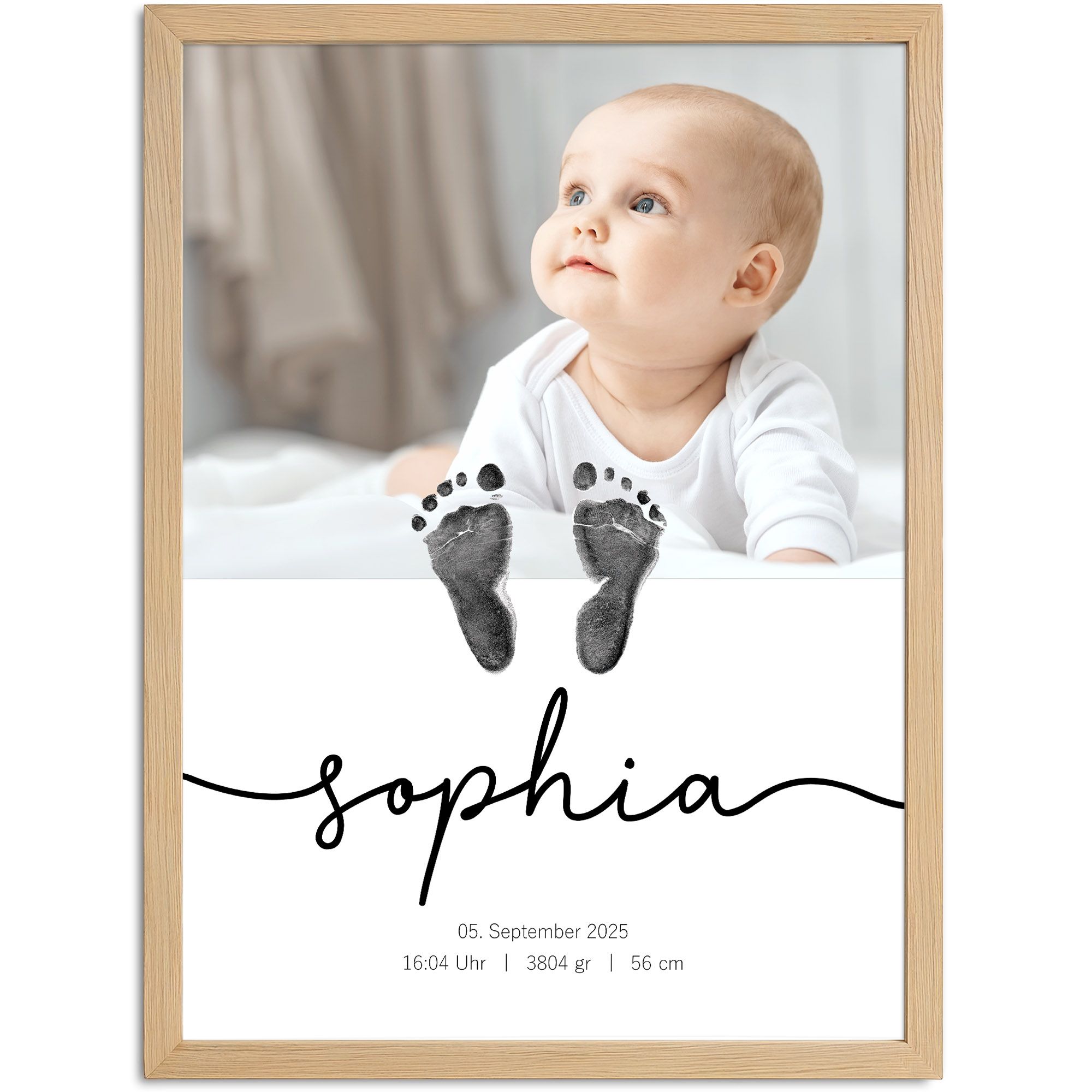 Dieses Geburtsposter ist mehr als ein Bild – es ist ein emotionales Geschenk zur Geburt, zur Taufe oder zum 1. Geburtstag, das von Herzen kommt. Ob von Oma und Opa, Tante oder Onkel oder als liebevolle Überraschung von den Eltern selbst: Personalisierte Babygeschenke mit Babyfussabdruck und Namen sind einzigartig – genau wie das neue Familienmitglied. Auch wunderbar als Zusatz zur Windeltorte oder als Geschenk zur Babyparty geeignet.
