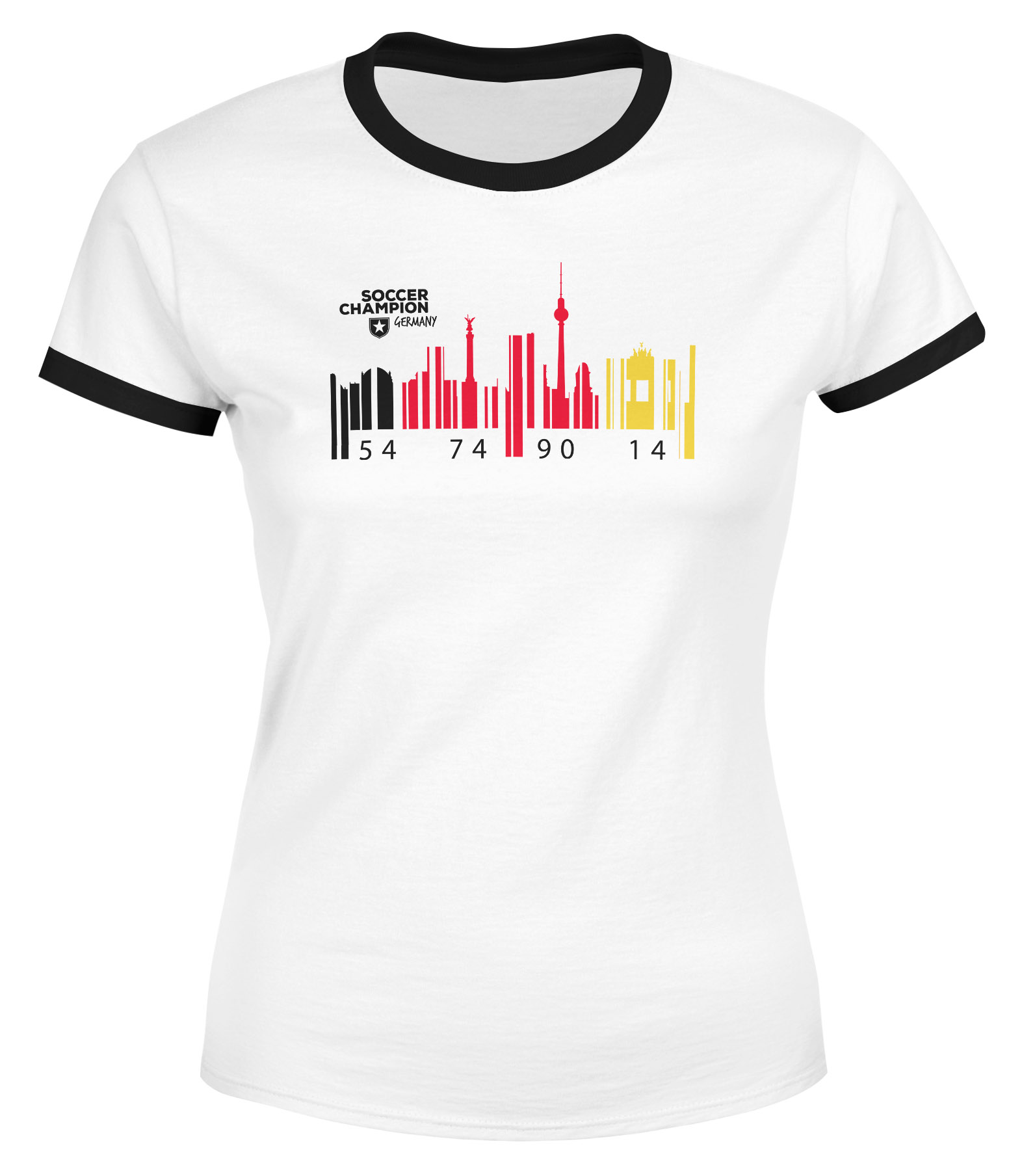 • cooles Damen Retro WM T-Shirt mit Berlin Skyline in den Deutschland-Farben Schwarz-Rot-Gold der Marke MoonWorks®