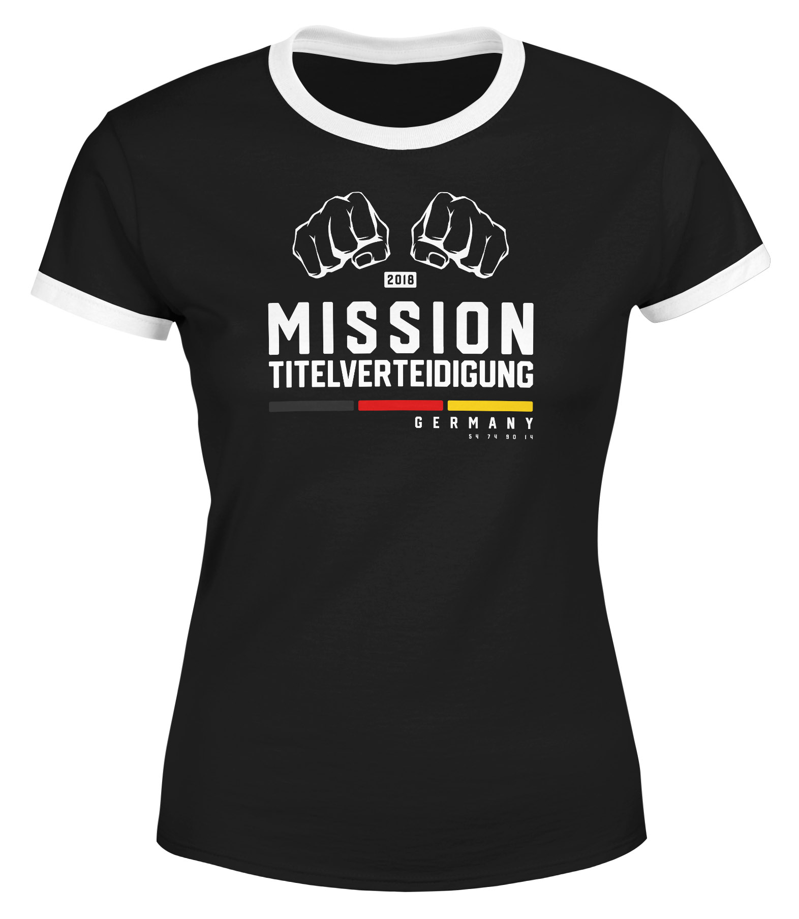 • Motiv: 2026 Mission Titelverteidigung Schwarz Rot Gold Fäuste Faust WM-Siege 54 74 90 14