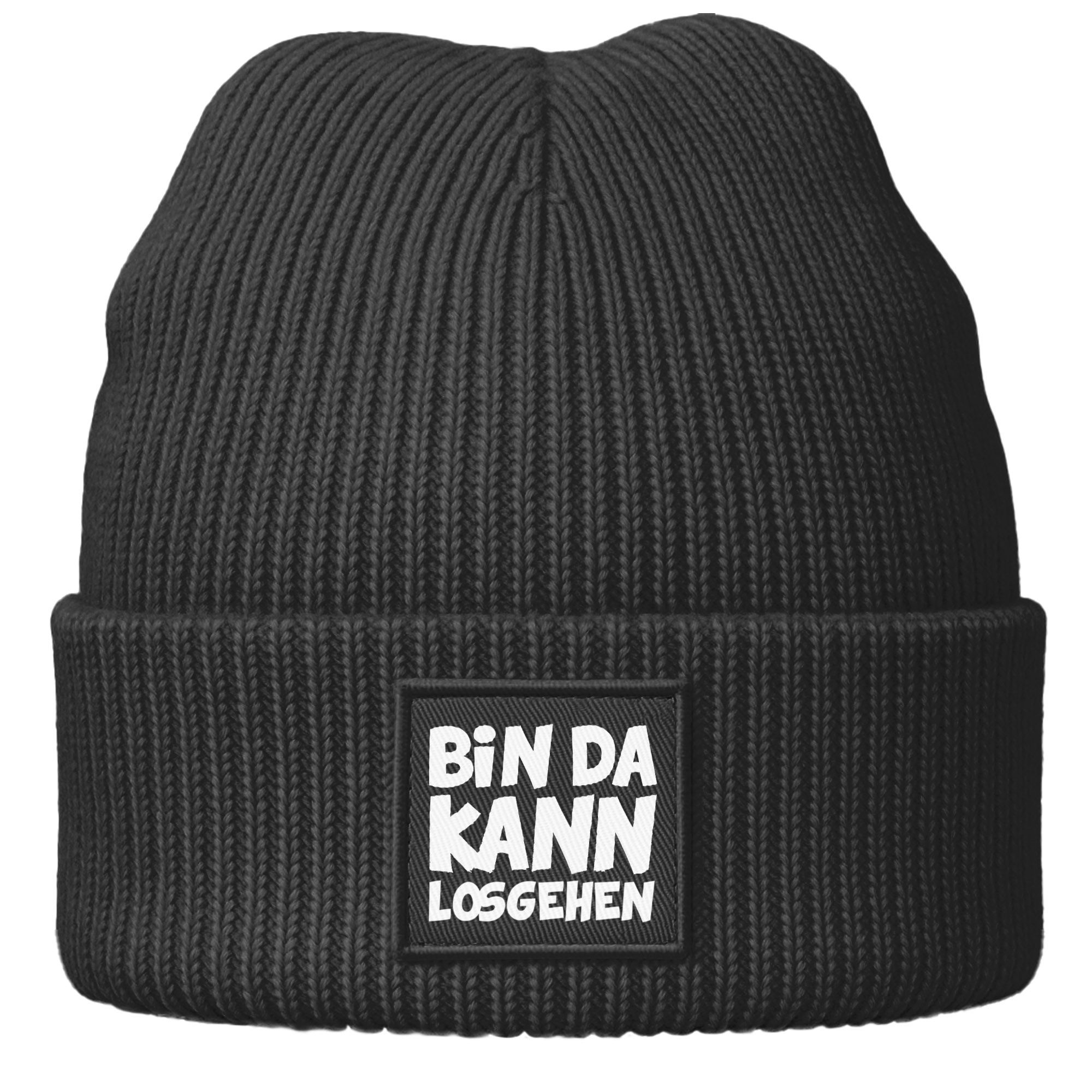 Herren Beanie Spruch Bin da kann losgehen Statement Motivation Patch Aufdruck Bedruckt Moonworks®