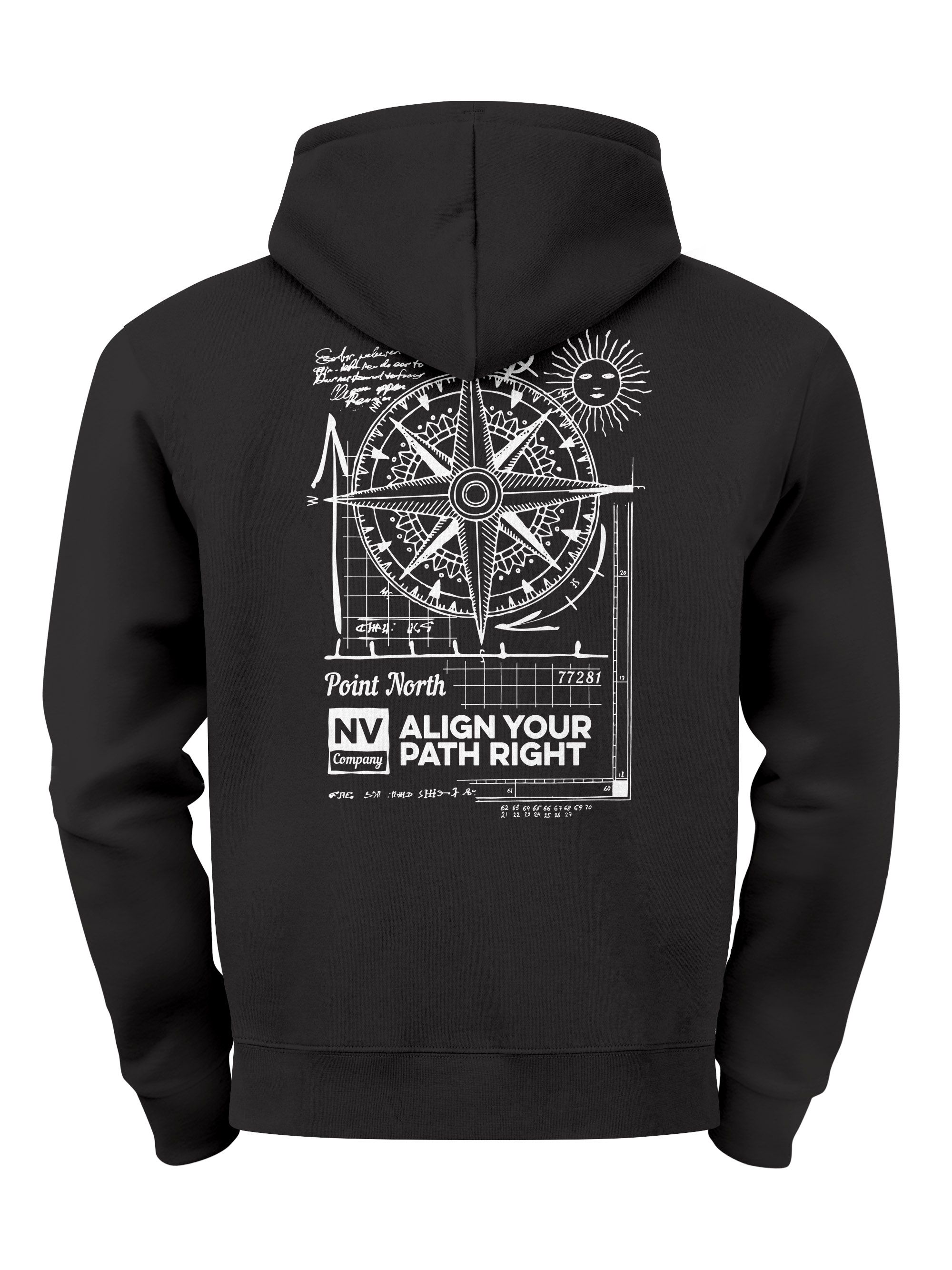 Herren Hoodie Kompass Motiv Backprint | Neverless Point North Kapuzenpullover mit Schriftzug Align Your Path Right Neverless®