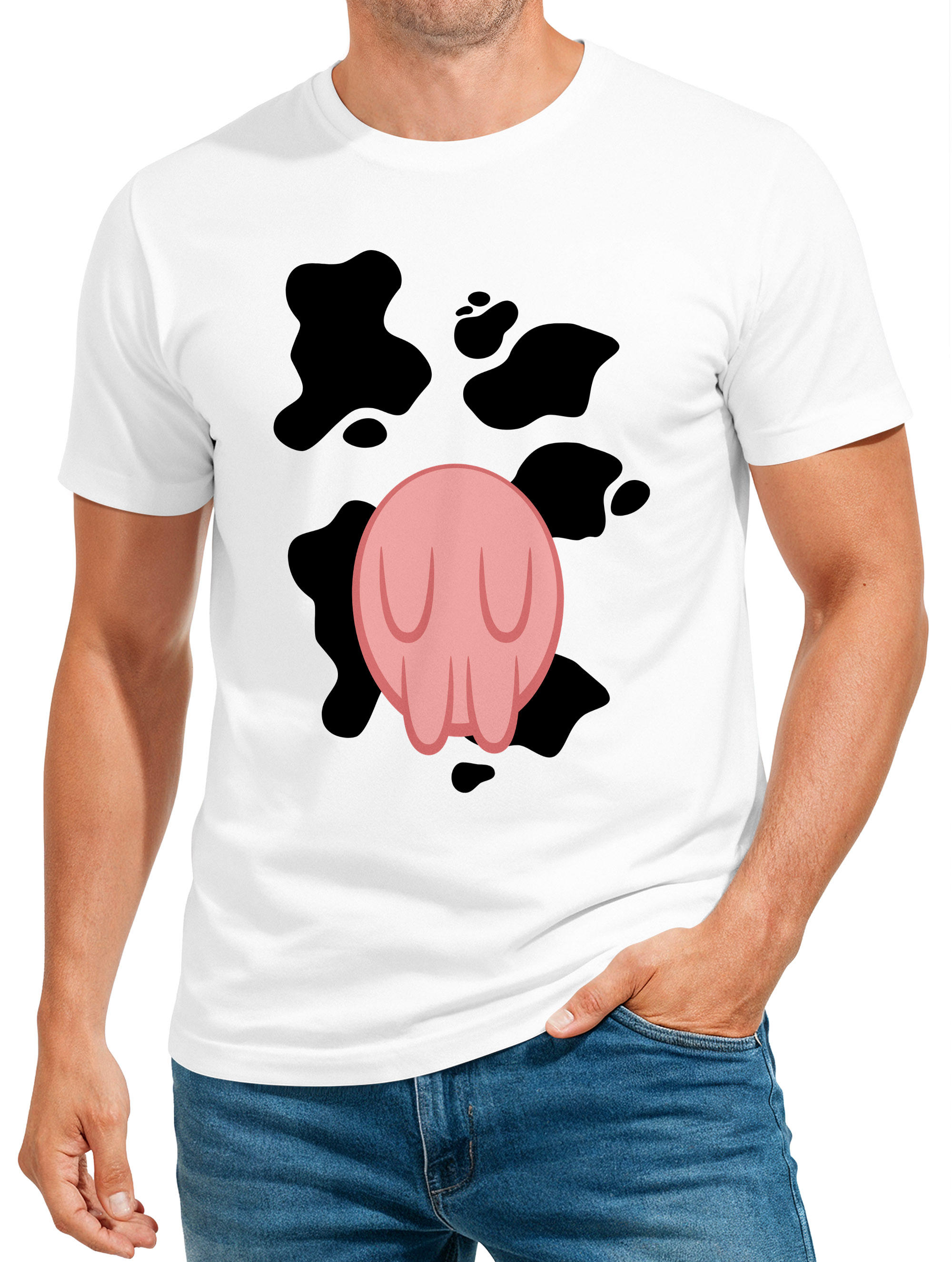 Herren T-Shirt Kuh Kostüm Verkleidung Karneval Fasching Fastnacht Kostümidee Last Minute lustig Fun-Shirt Moonworks®