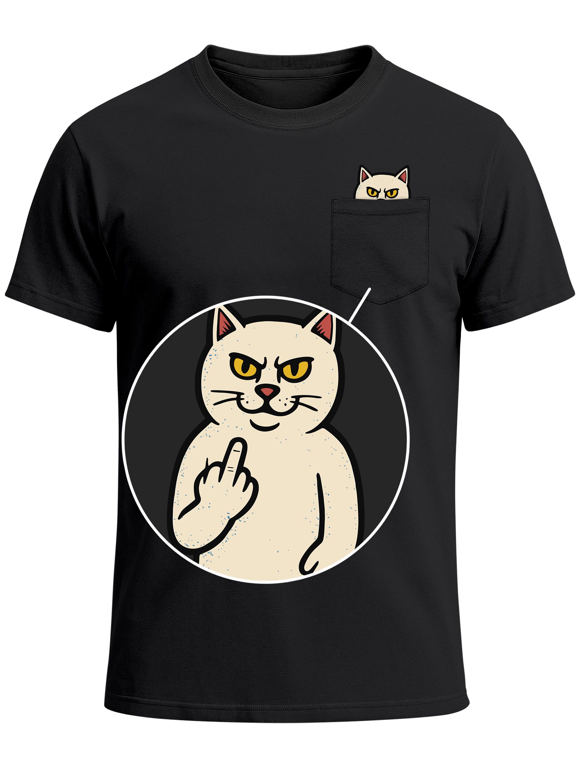 - Brusttasche mit Überraschung! Aus der Tasche schaut frech eine Katze mit Mittelfinger. Das perfekte Shirt für "Ich hasse Menschen" Typen oder für Montage ;-) Ideal für Freizeit, Alltag oder als originelles Geschenk für Männer mit Humor. Ein echter Blickfang mit Überraschungseffekt