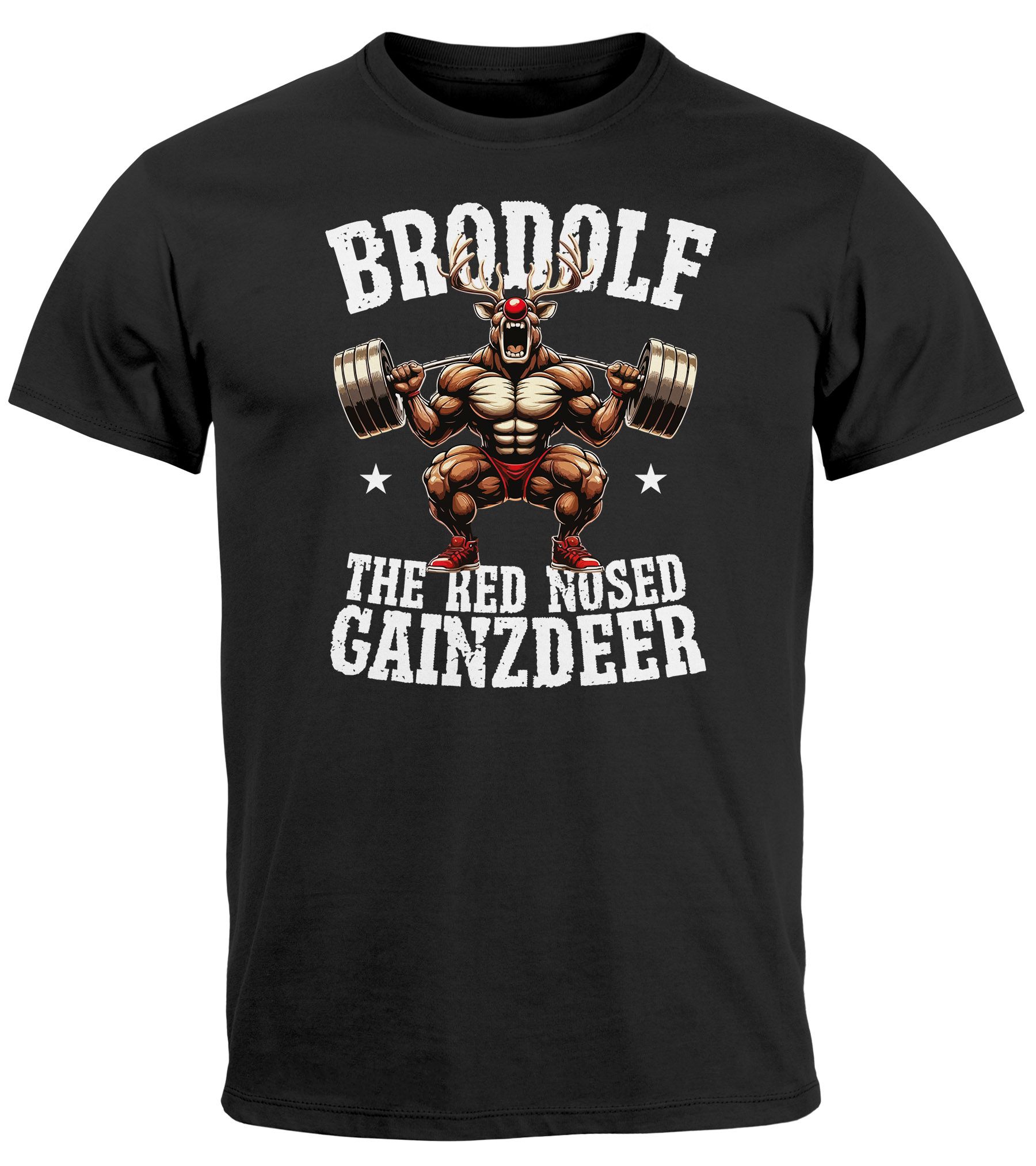 - Brodolf the rednosed Gainzdeer– dieser Weihnachtsmann hebt lieber Gewichte als Geschenke! Perfektes Weihnachtsshirt für alle Männer, die auch zur Weihnachtszeit an ihren Gains arbeiten (oder es zumindest behaupten)