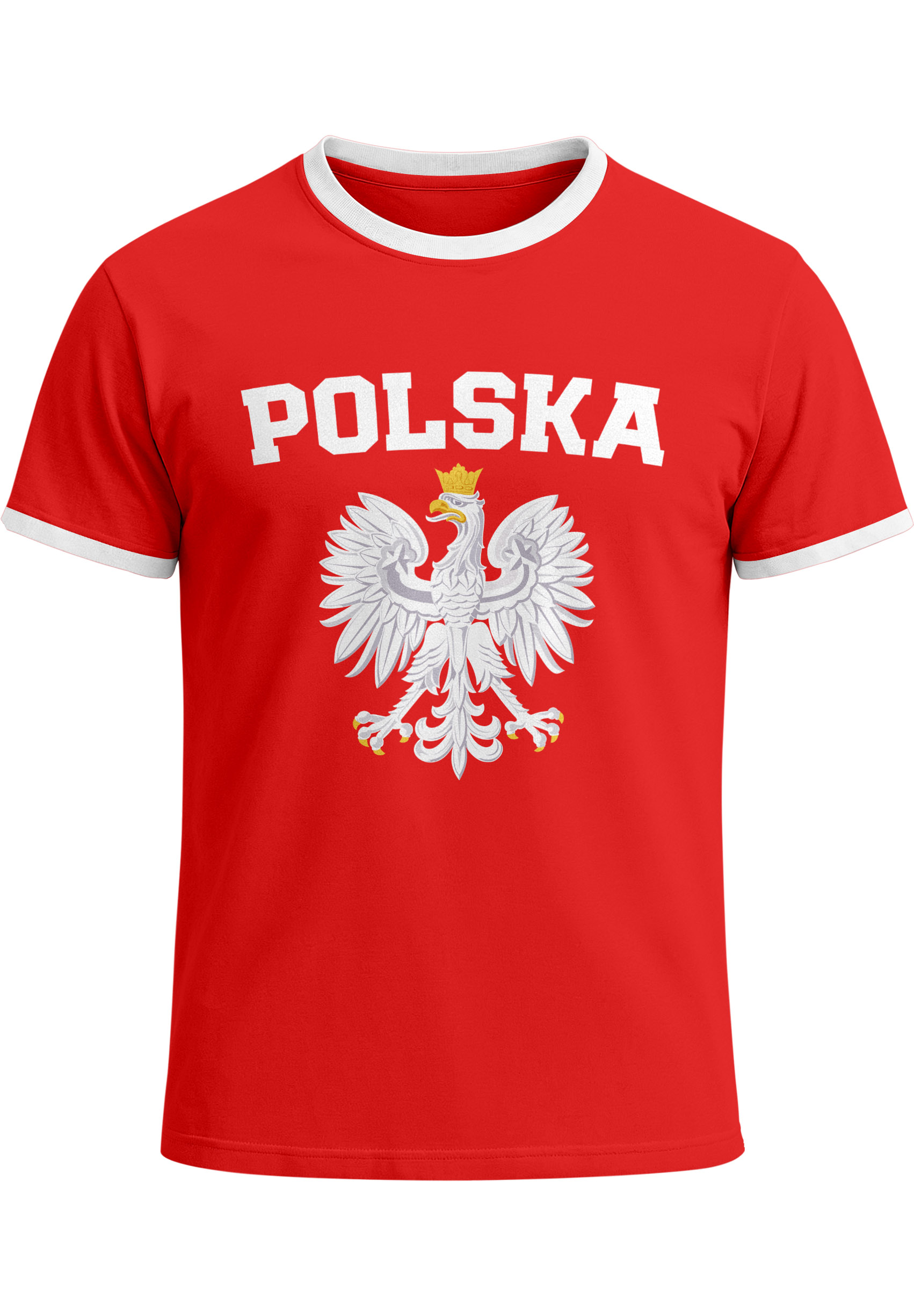• cooles Herren Retro Shirt zur WM 2026 mit weißem Adler Wappen in den Farben der polnischen National Flagge der Marke Moonworks® - die günstige Alternative zum offiziellen Trikot