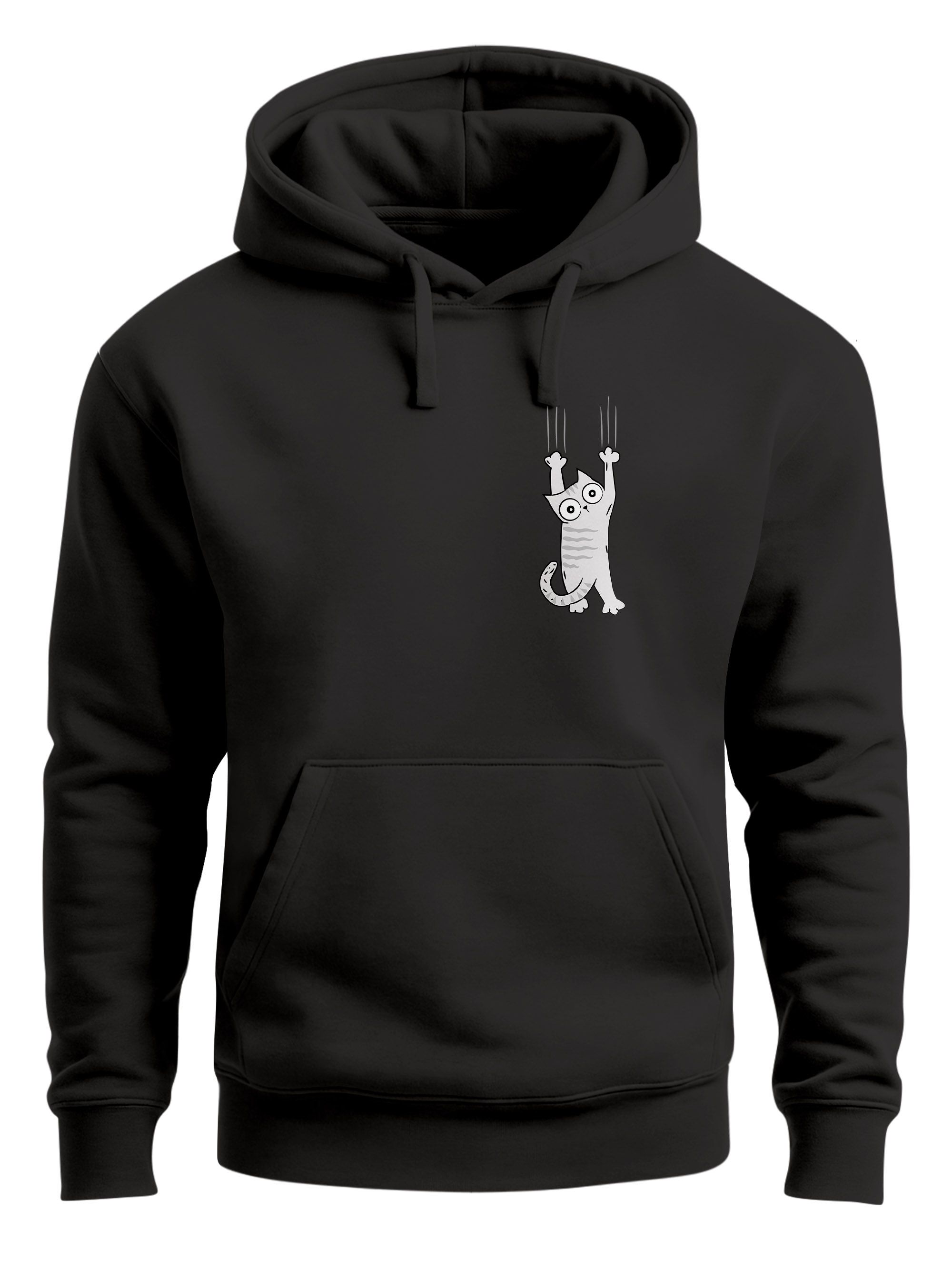 - Lässiger Basic-Hoodie für Männer mit witzigem Eyecatcher. Vorsicht Stubentiger an Bord bzw. am Pullover ;-)