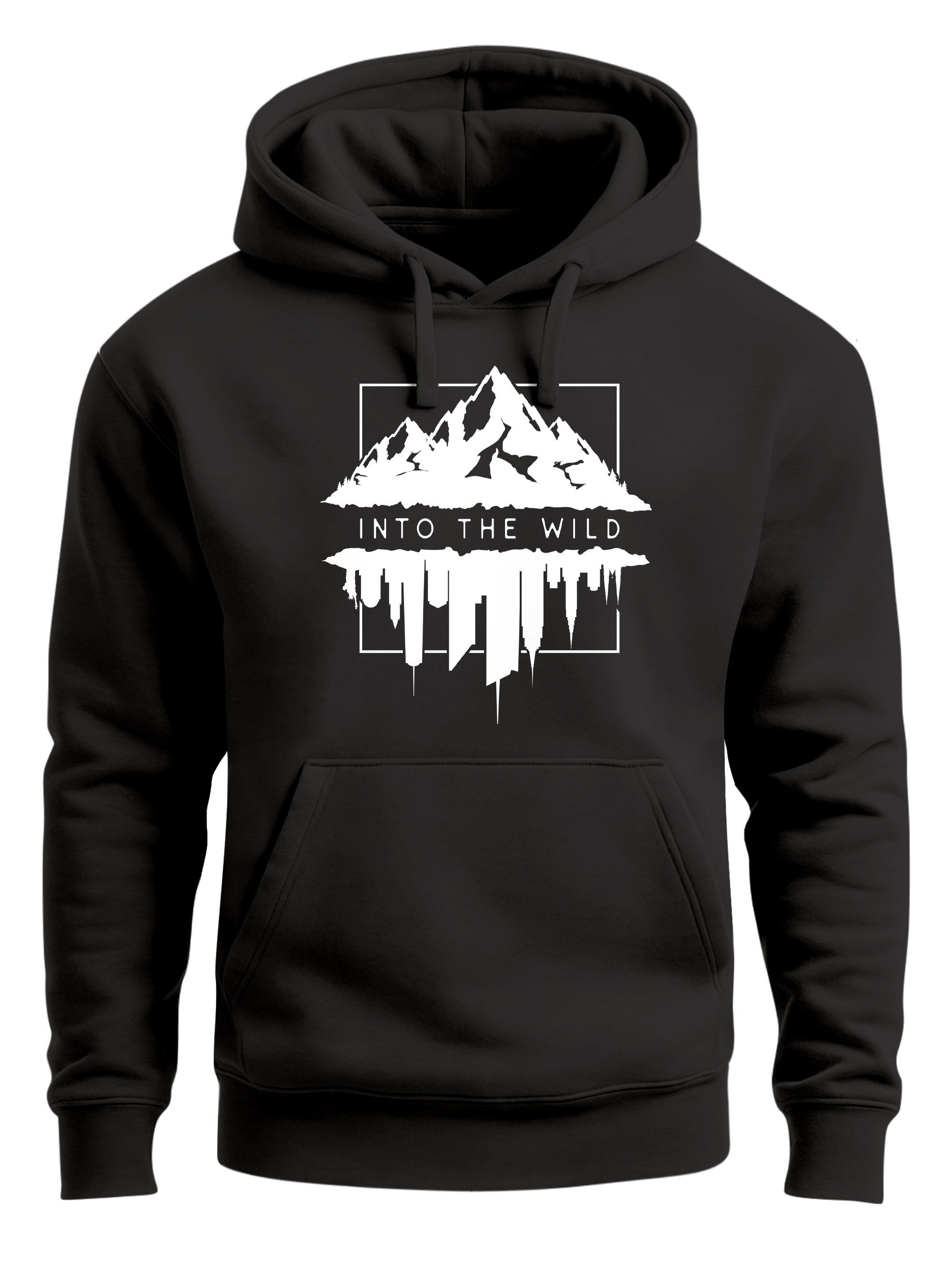 - cooler Herren Hoodie mit "Into the wild" Print, Skyline und Bergen der Marke Neverless® - der perfekte Pullover für Freizeit, Alltag, zum Chillen auf der Couch oder als Eye-Catcher zum lässigen Streetwear-Outfit