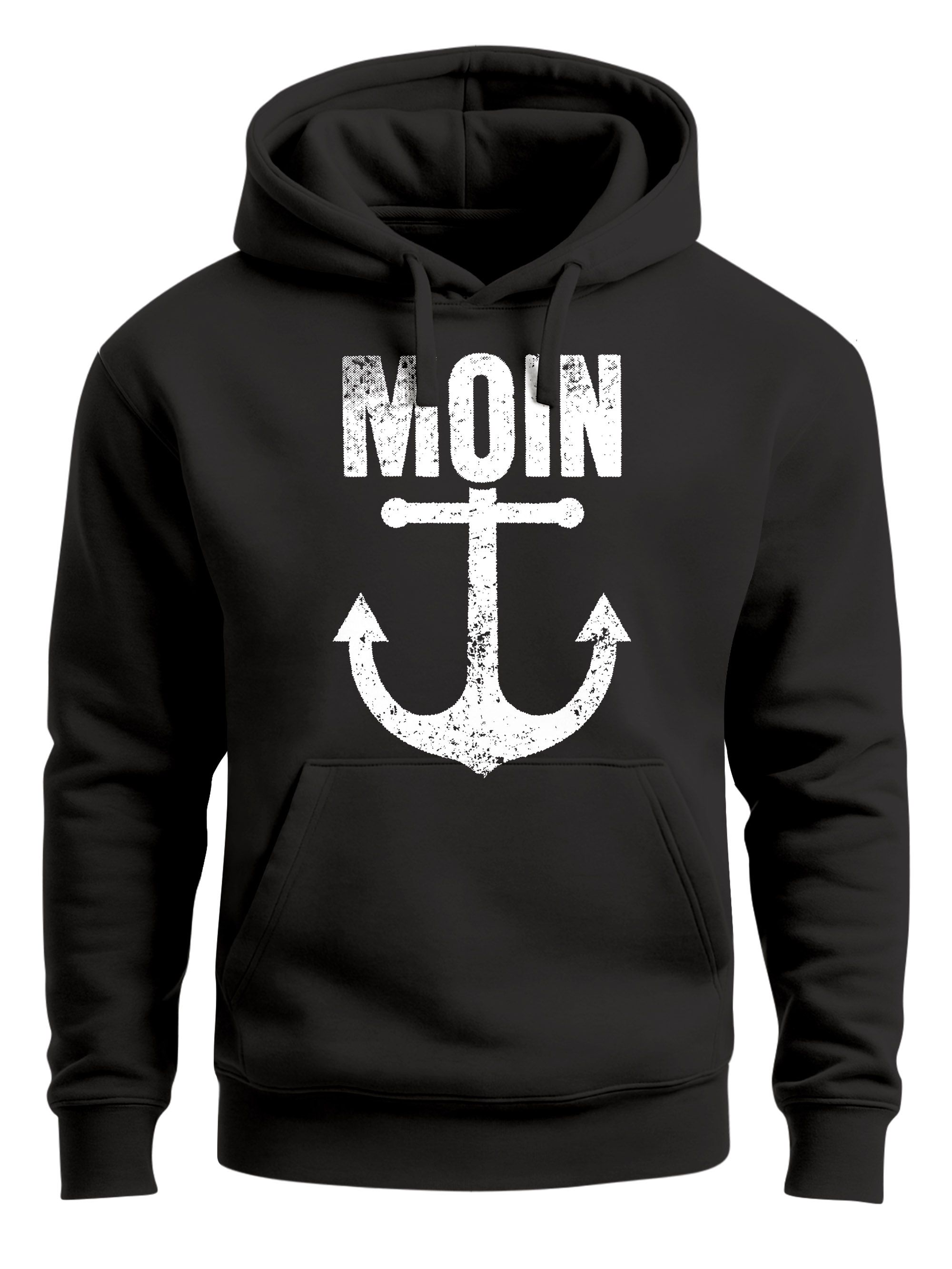 - Cooler Kapuzenpulli für Männer mit hochwertigem Anker-Print und auffälligem Schriftzug "Moin". Das perfekte Oberteil für Nordlichter & Co