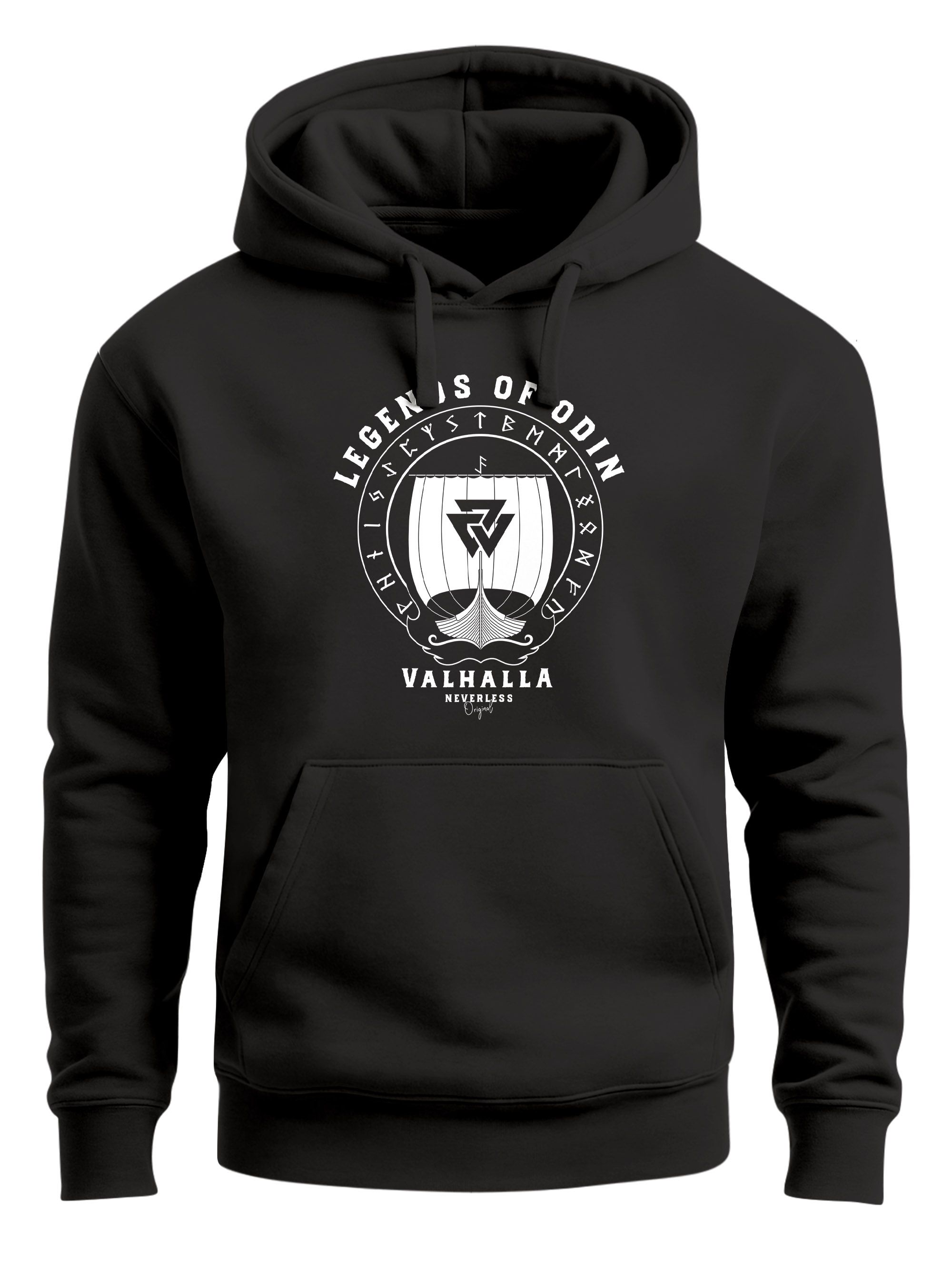 - Key-Piece für kühle Tage der Marke Neverless®. Cooler Hoodie für Herren mit ultimativ gutem Viking Print und "Legends of Odin" Schriftzug. Gekleidet in diesem lässigen Kapuzen Pullover ist dir der Einzug in Valhalla sicher