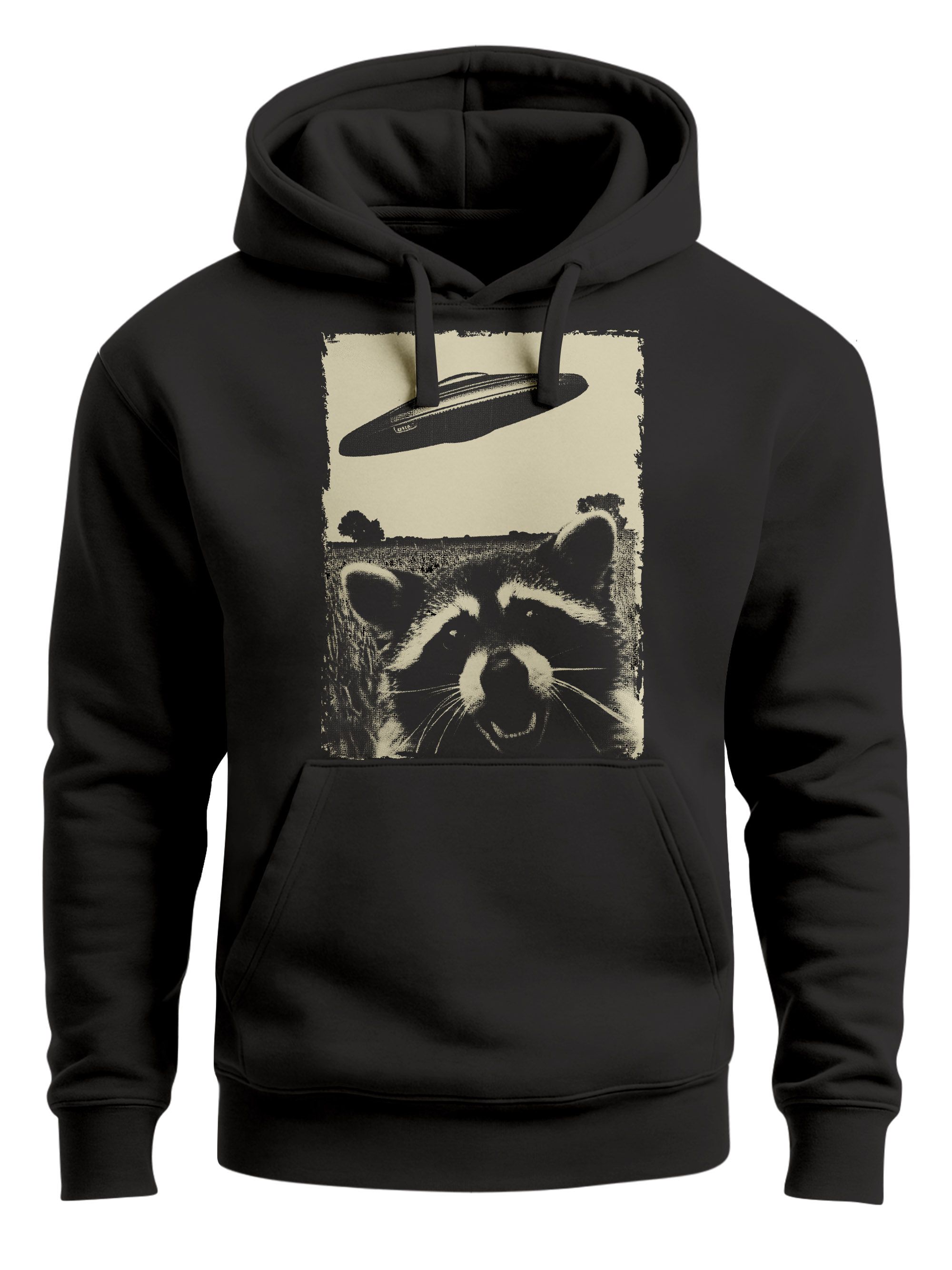 - Frontprint als Eyecatcher: mit dem witzigen Fotodruck im Retro-Stil fällst du garantiert auf. Lustige Ufo-Klamotten liegen sowieso immer im Trend und sind auch mit Waschbär und ohne Alien-Sprüche lustig