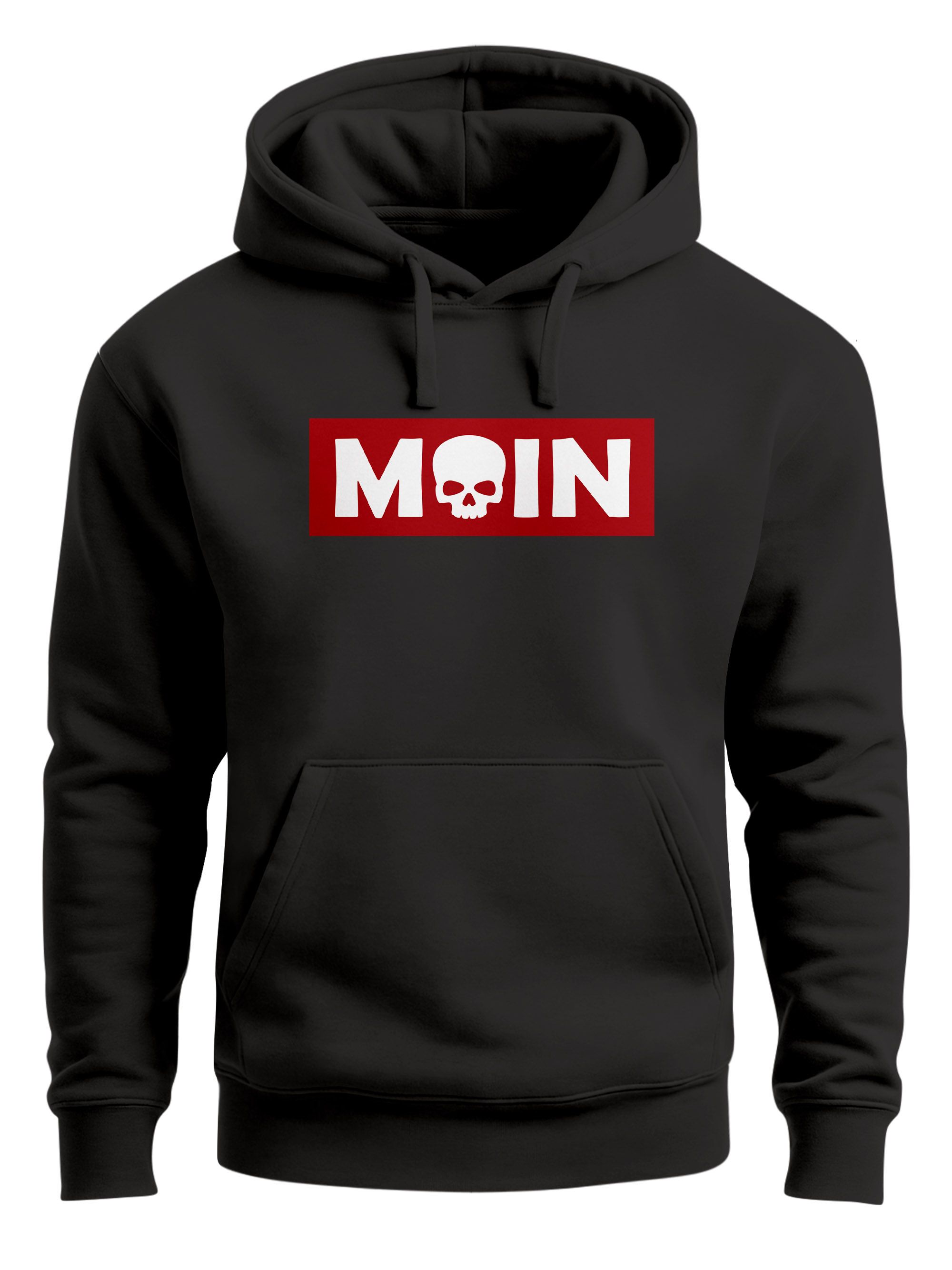 - Cooler Kapuzenpullover für Männer mit rotem Balken und Aufschrift "Moin". Kombiniert mit Totenkopf ist das individuelle Design ein echter Hingucker und ein Must Have für alle Nordlichter