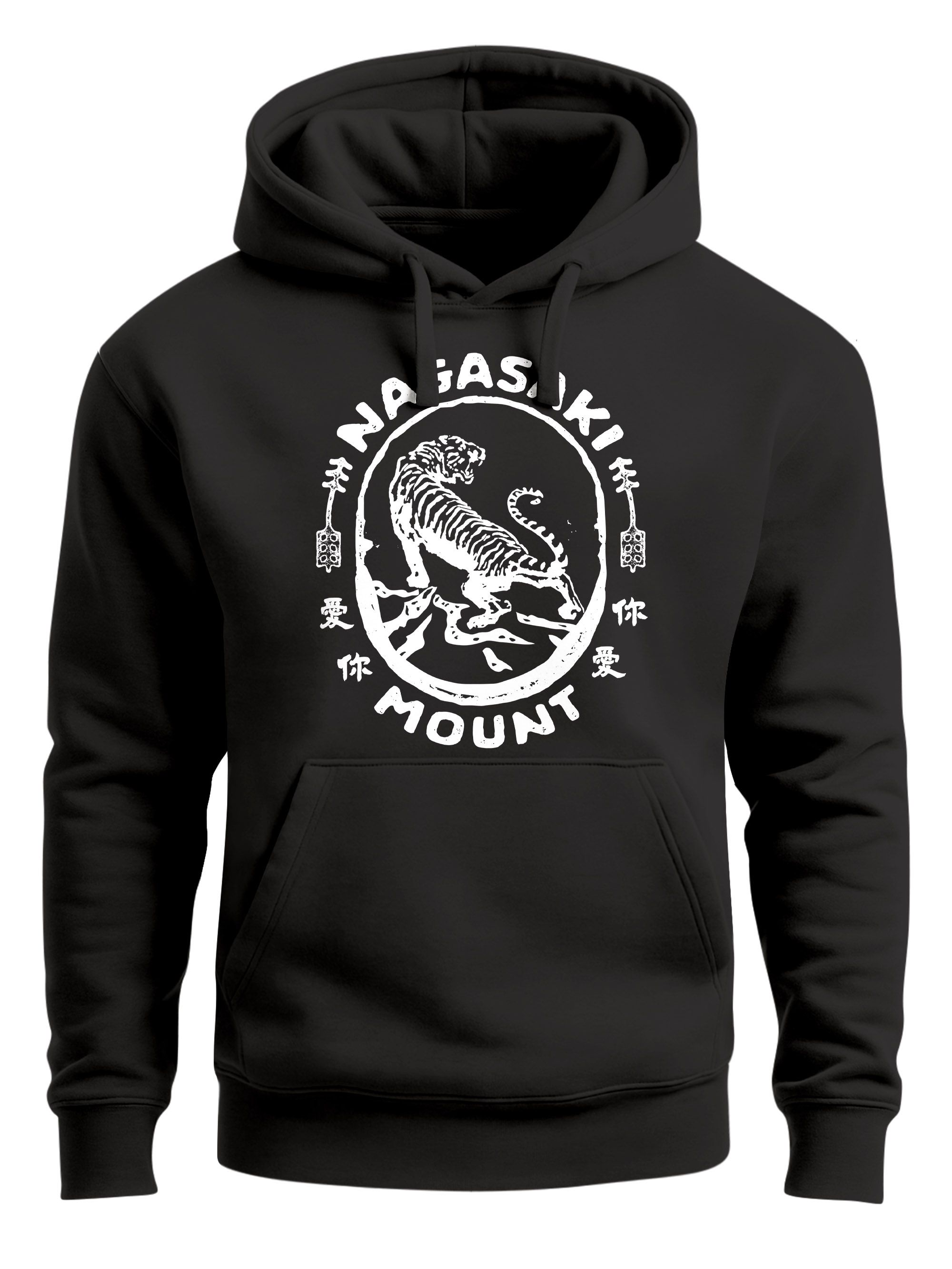 - Key-Piece für kühle Tage der Marke Neverless® Dieser Hoodie für Herren mit hochwertigem Tiger Print mit japanischen Schriftzeichen und Nagasaki Mount Schriftzug ist ein absoluter Eyecatcher und kann zu jedem coolen Streetstyle Outfit kombiniert werden