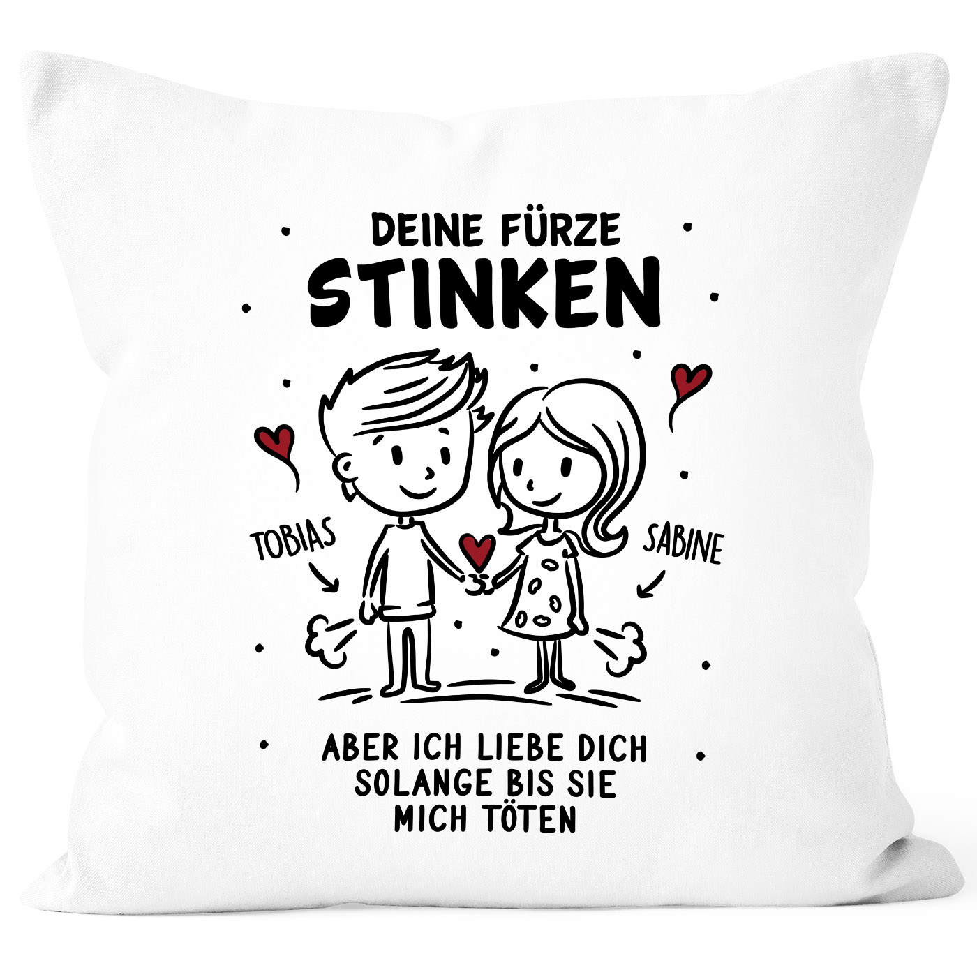 - Motiv: lustiger Liebesspruch "Deine Fürze stinken, aber ich liebe dich solange bis sie mich töten"