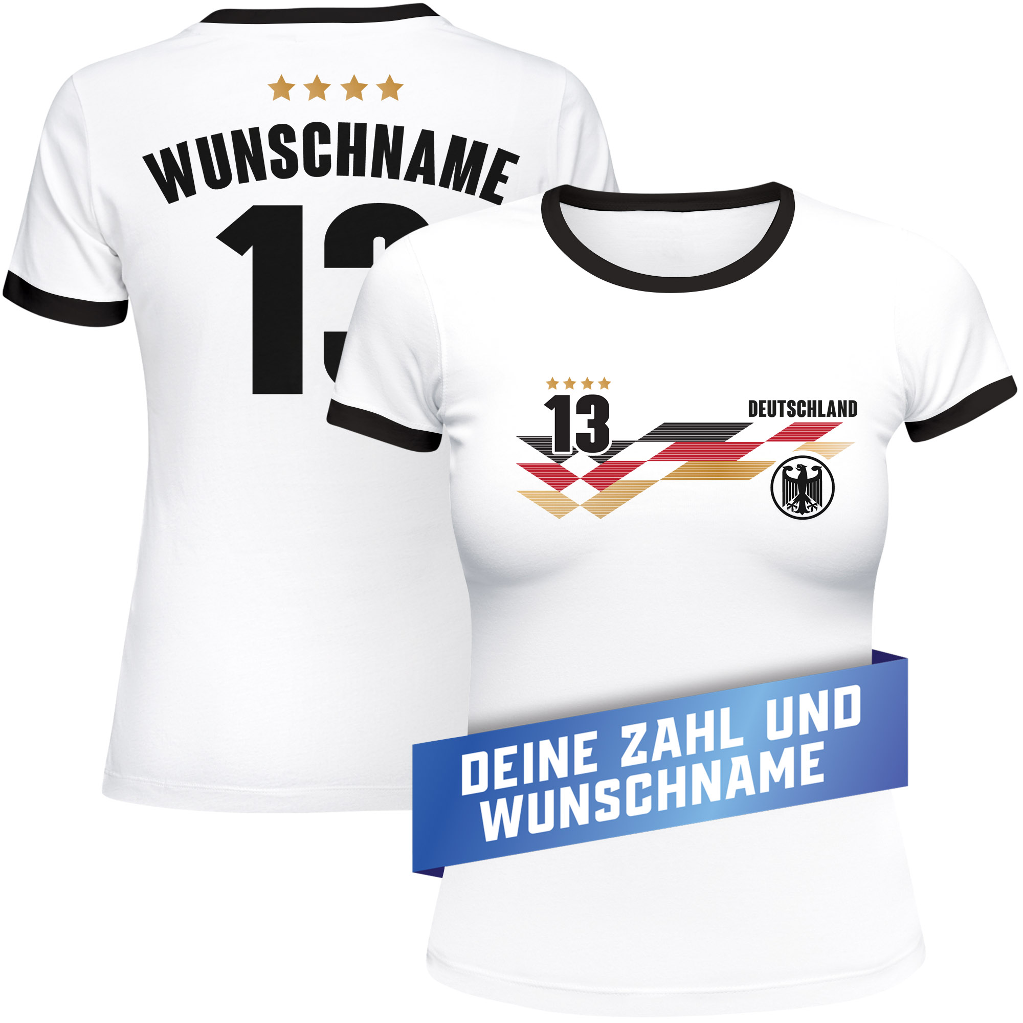 T-Shirt Damen Fussball Deutschland Trikot personalisiert mit Name und Nummer Weltmeisterschaft 2026 Fanshirt Moonworks