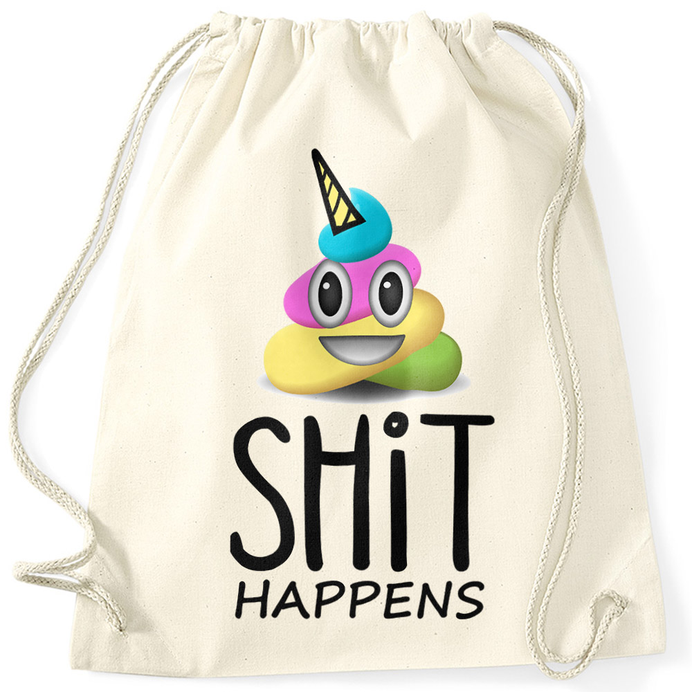 • cooler Turnbeutel mit lustigem "Sh*t Happens" Schriftzug und buntem Kackhaufen der Marke Moonworks®