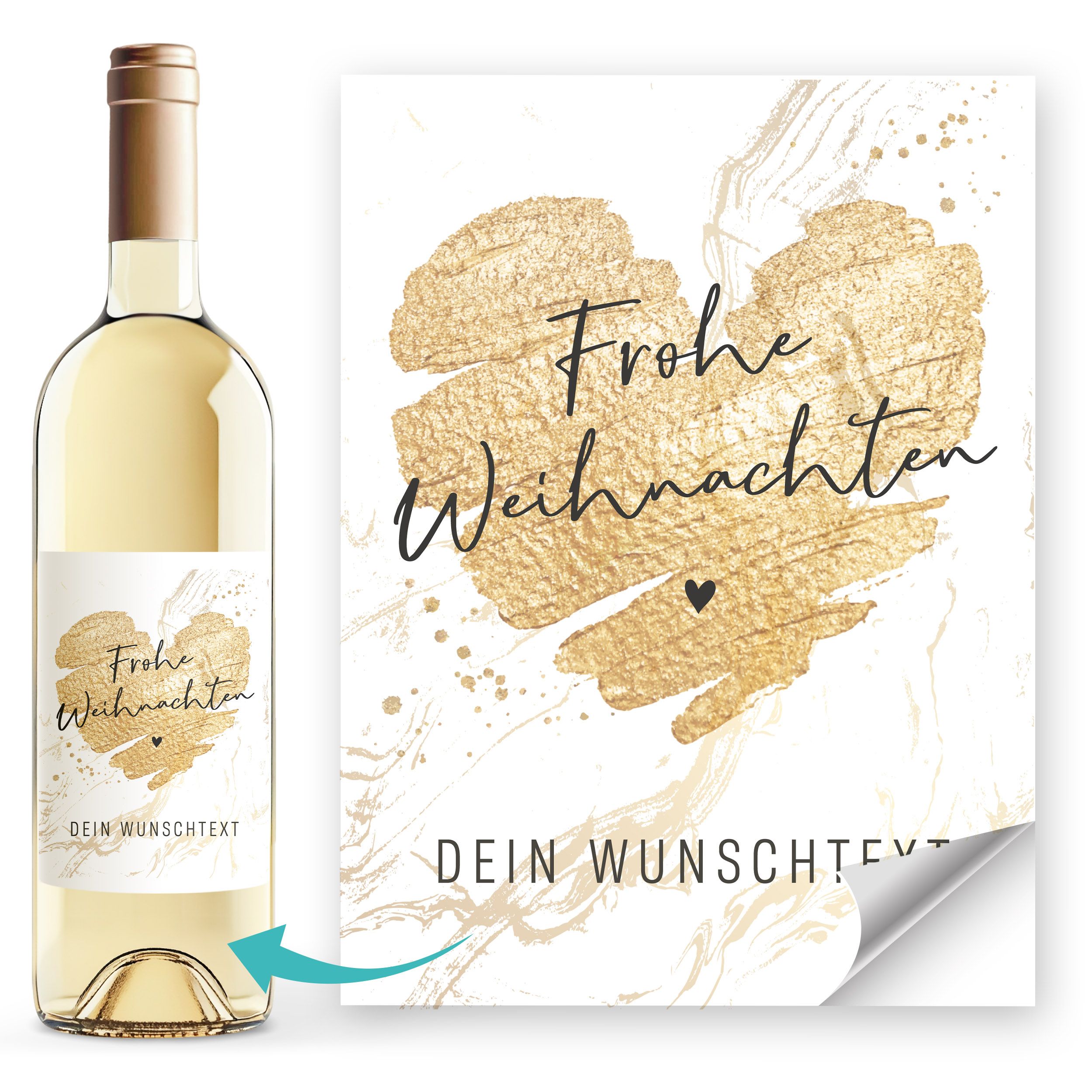 Weinetikett Frohe Weihnachten personalisierbar Wunschtext Herz Flaschenetikett – XMAS Deko für Flaschen SpecialMe®
