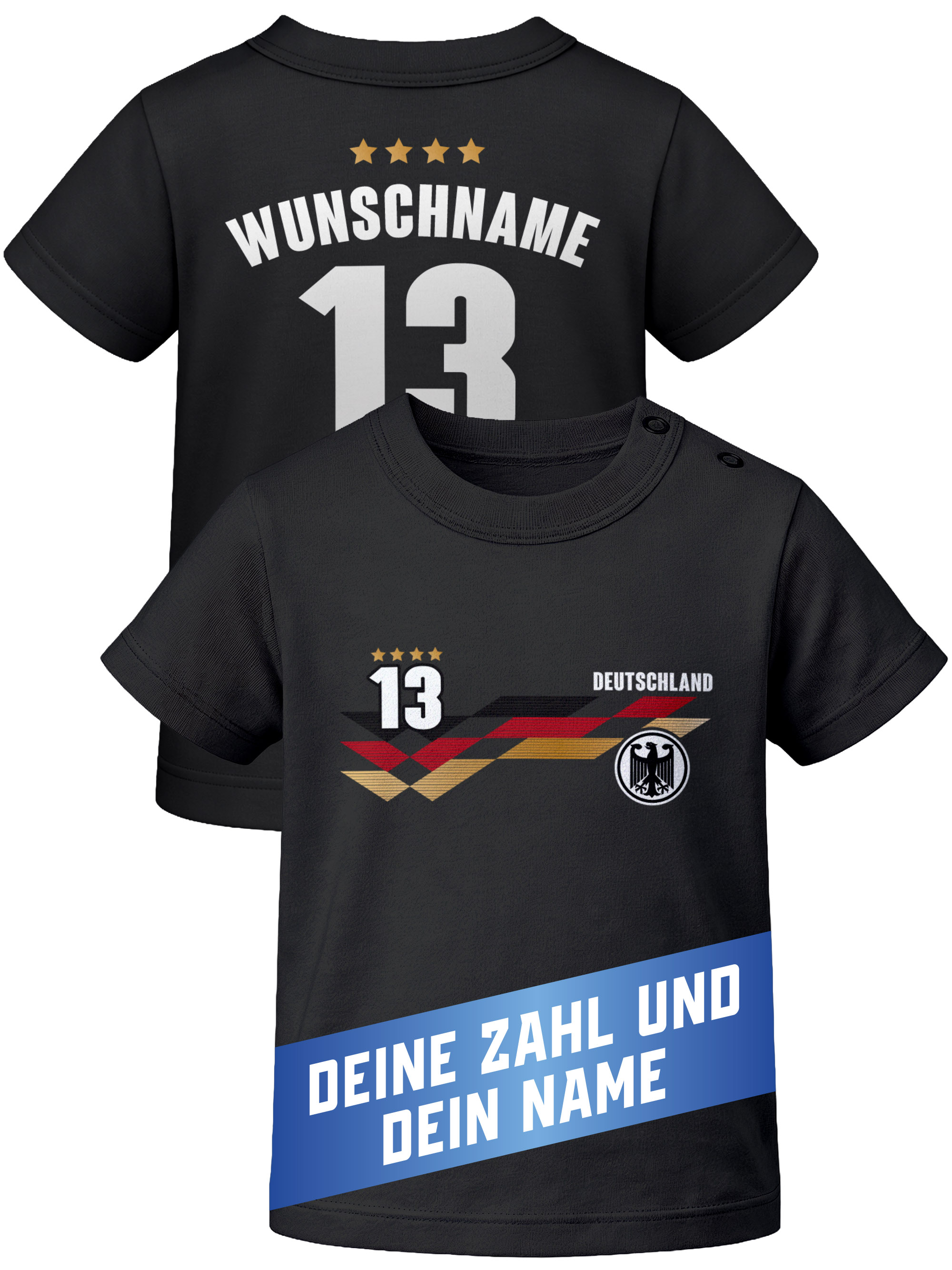Dieses personalisierte Baby T-Shirt im Fußball Trikot-Stil macht aus dem Nachwuchs den süßesten Fan der WM 2026. Vorne sportliches Fußball-Design, hinten dein Wunschname mit Nummer – genau wie bei den großen Stars auf dem Platz. Das Shirt erinnert an ein echtes Mini-Fußballtrikot und sorgt für Stadionfeeling im Kinderwagen. Ob beim gemeinsamen Fußballabend, beim Public Viewing oder beim Familienfoto: Mit diesem personalisierten Baby Shirt wird sofort klar, für welches Team hier gejubelt wird. Der Druck auf Vorder und Rückseite verleiht dem Shirt einen authentischen Trikot-Look. Name und Nummer machen das Outfit zu einem individuellen Fan-Shirt und einem echten Hingucker für kleine Nachwuchs-Fußballfans.