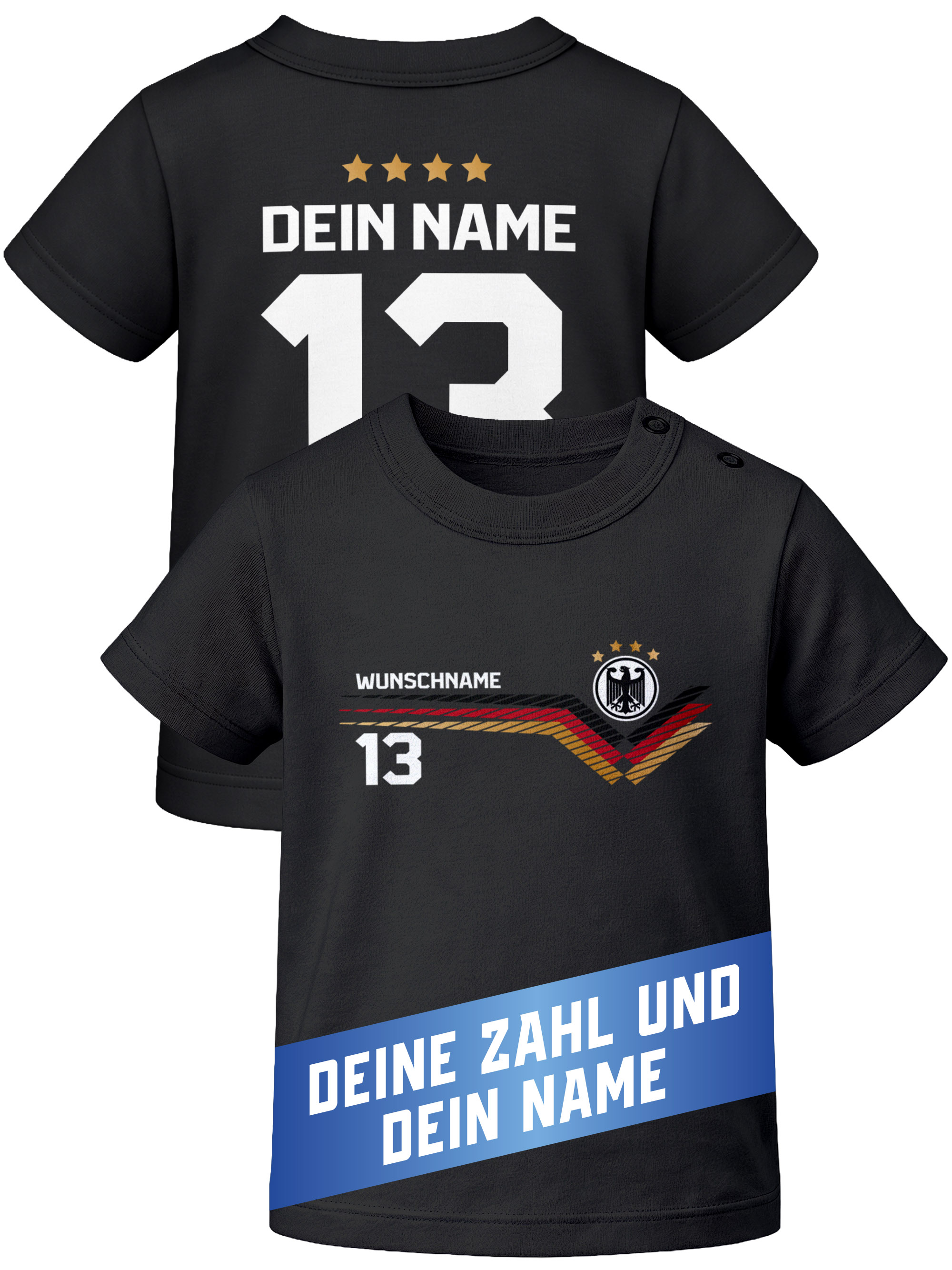 Baby T-Shirt Fußball WM 2026 Fanshirt Deutschlandshirt Trikot-Stil personalisiert Name Nummer Baumwolle Moonworks®