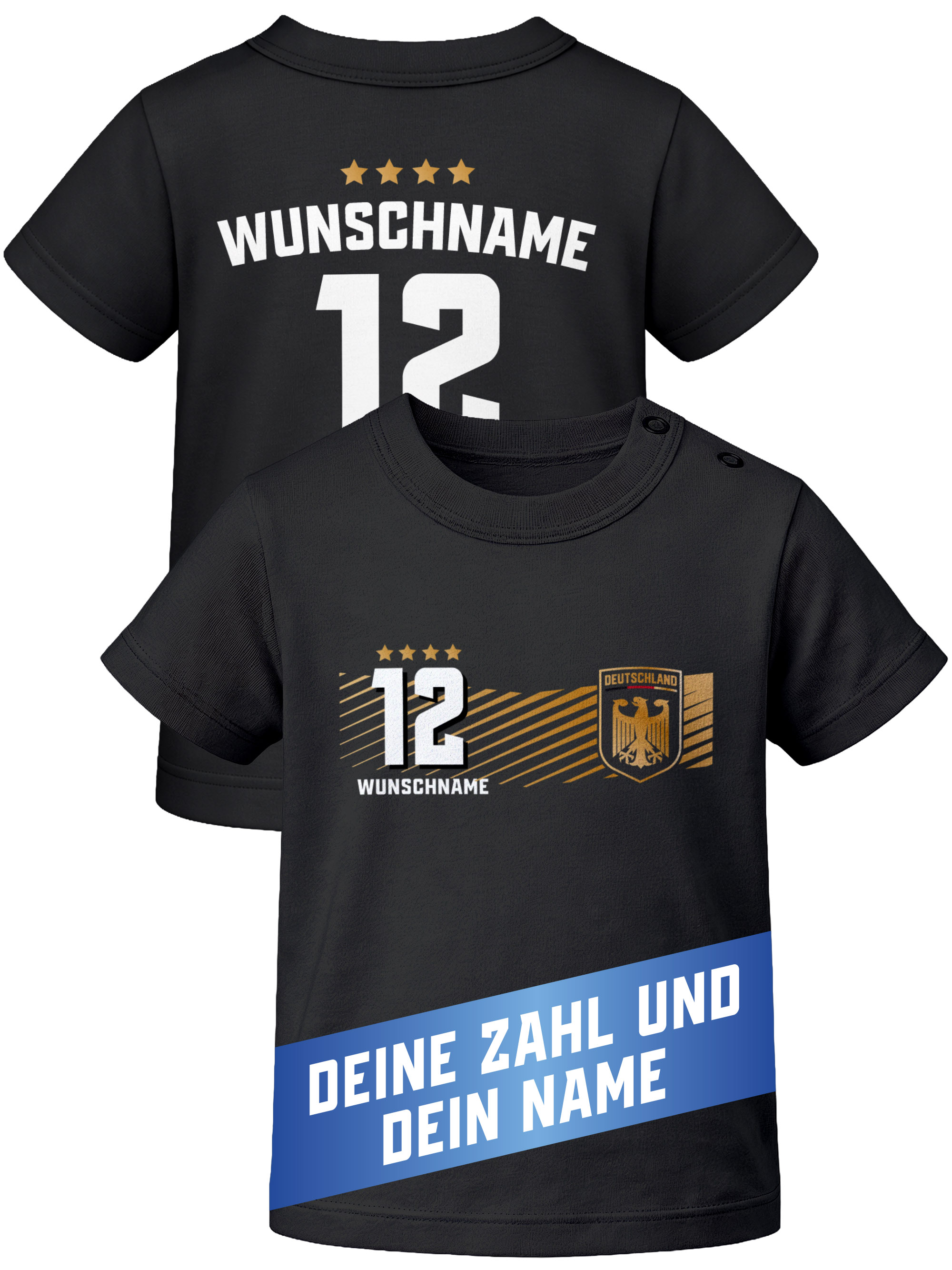Baby T-Shirt WM 2026 Deutschlandshirt Trikot-Stil personalisiert Name Nummer Fußball Fanshirt Baumwolle Moonworks®