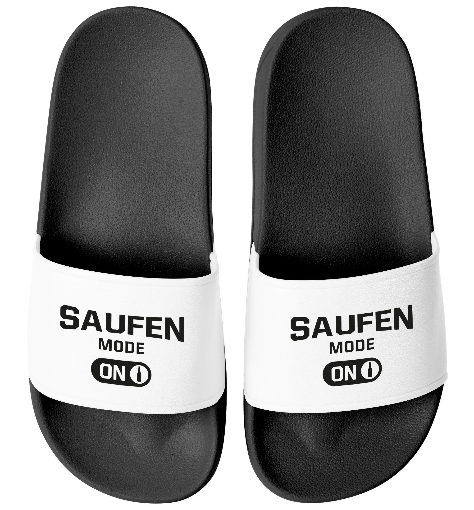 Badeschlappen Badelatschen Saufen Mode on mit Aufdruck Bedruckt Herren Damen Badeschuhe Männer Urlaub Party JGA Moonworks®