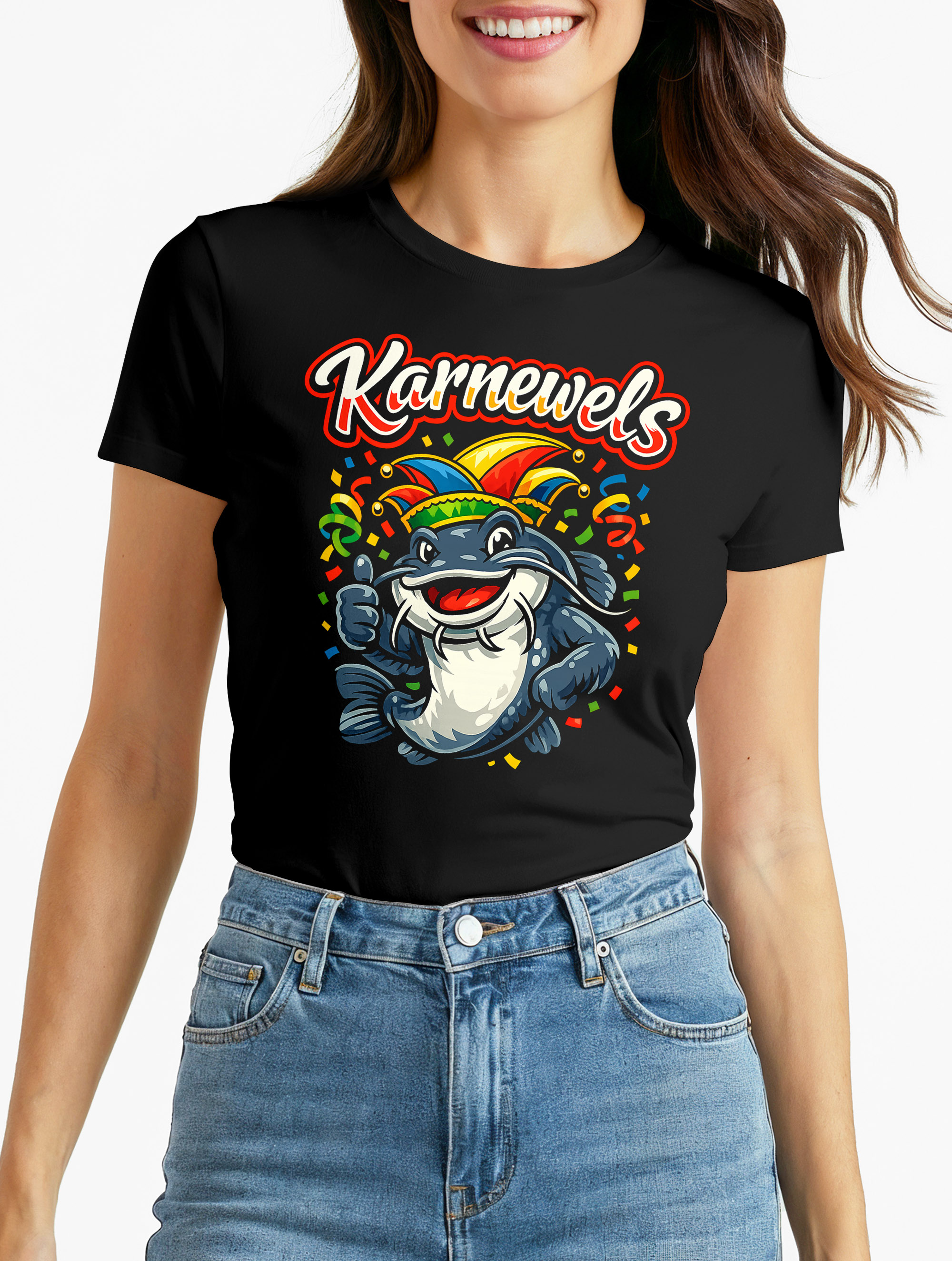 - Das Karneval T-Shirt für Damen mit feierndem Fisch und witzigem Wortspiel "Karnewels" ist wie gemscht für Frauen die den Start der 5. Jahreszeit kaum erwarten können. Hol dir dein Partyshirt und sei bereit für Weiberfastnacht, Rosenmontag, Straßenkarneval und lange Nächte