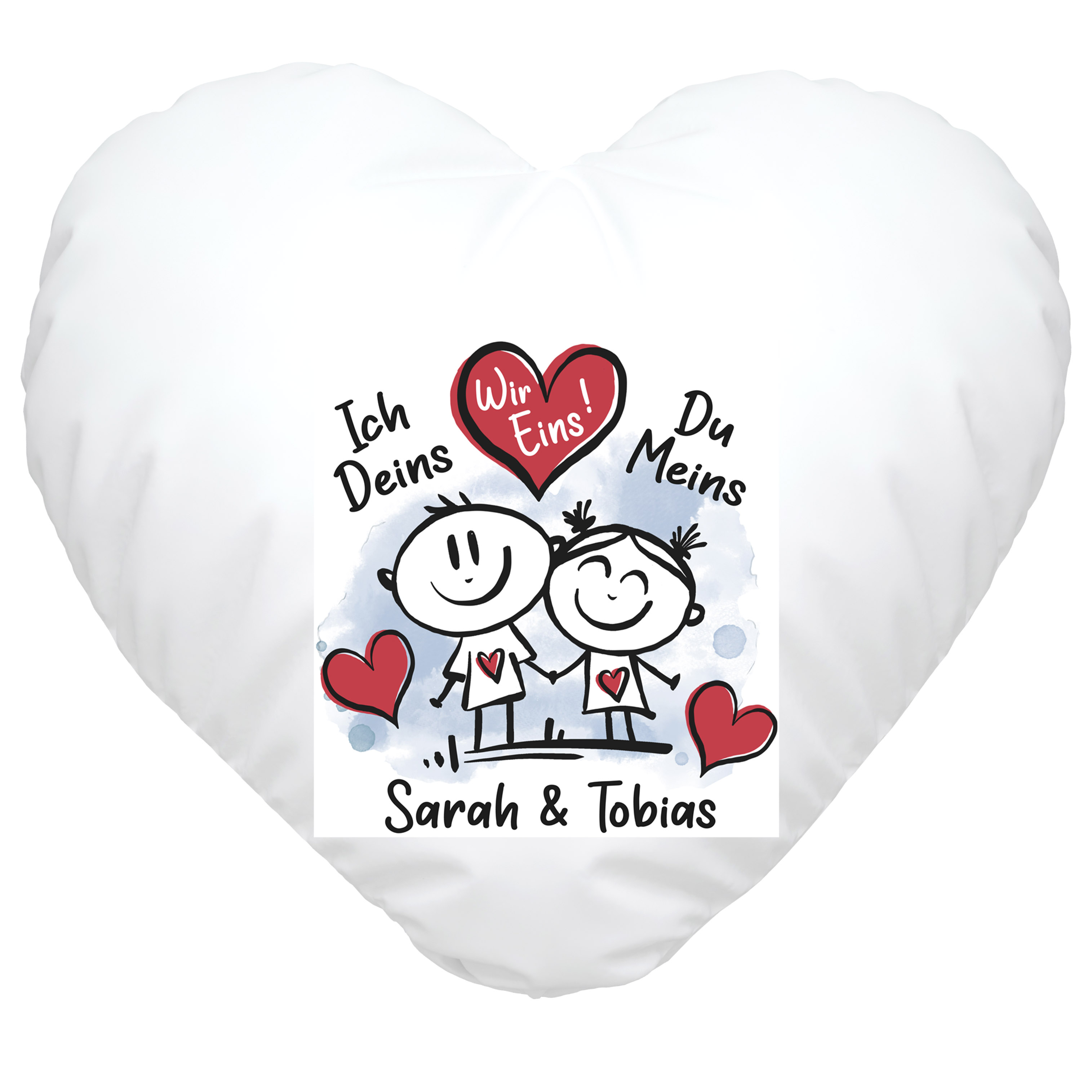 - personalisierbares Motiv: Strichmännchen, Spruch "Ich Deins, du Meins, Wir Eins", Wunschnamen
