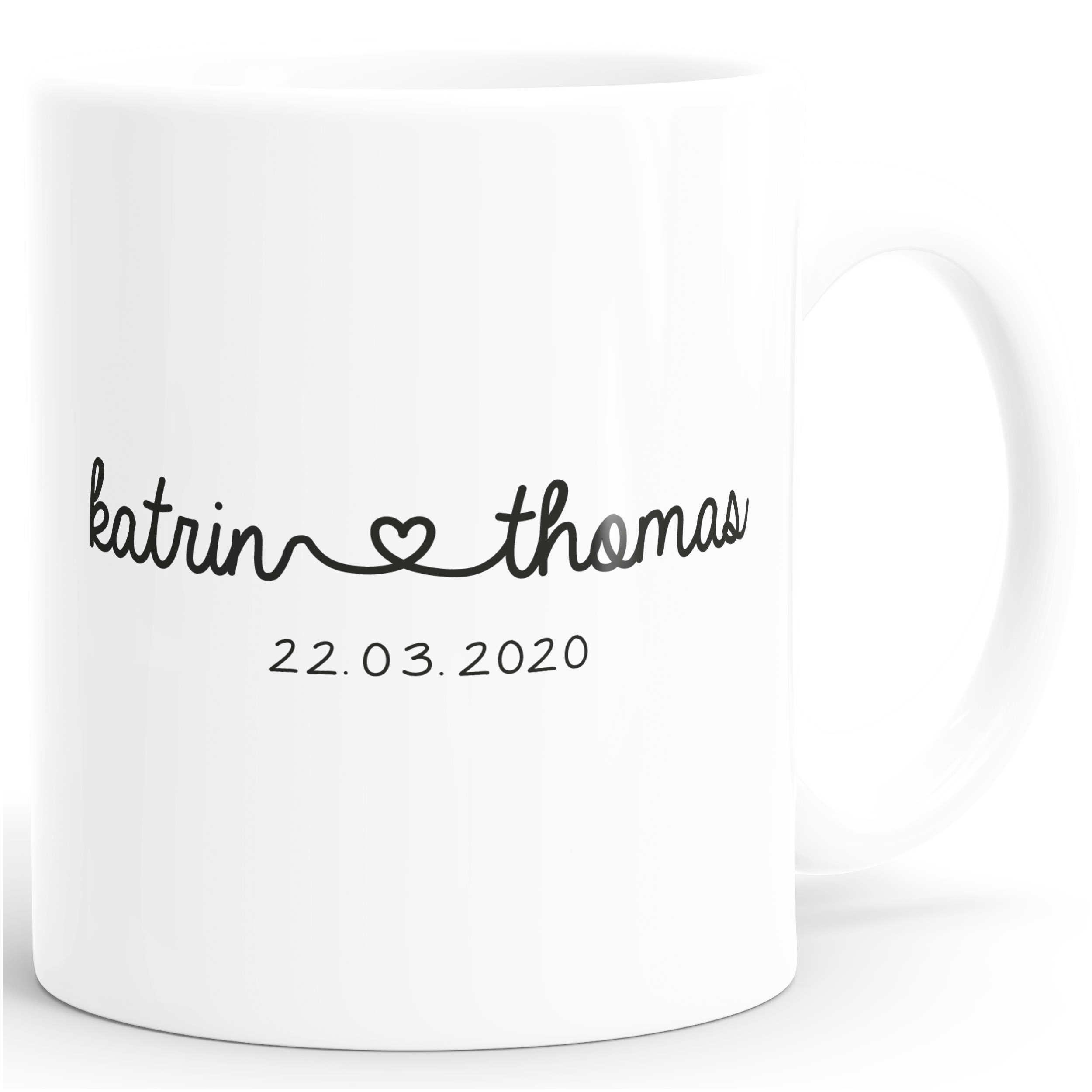 - Ein zauberhaftes Geschenk zum Hochzeits-oder Jahrestag ist diese schöne personalisierbare Kaffee-Tasse mit anpassbaren Namen des Paares verbunden durch ein Herz und mit anpassbarem Datum. Auch eine schöne Geschenkidee zur Hochzeit