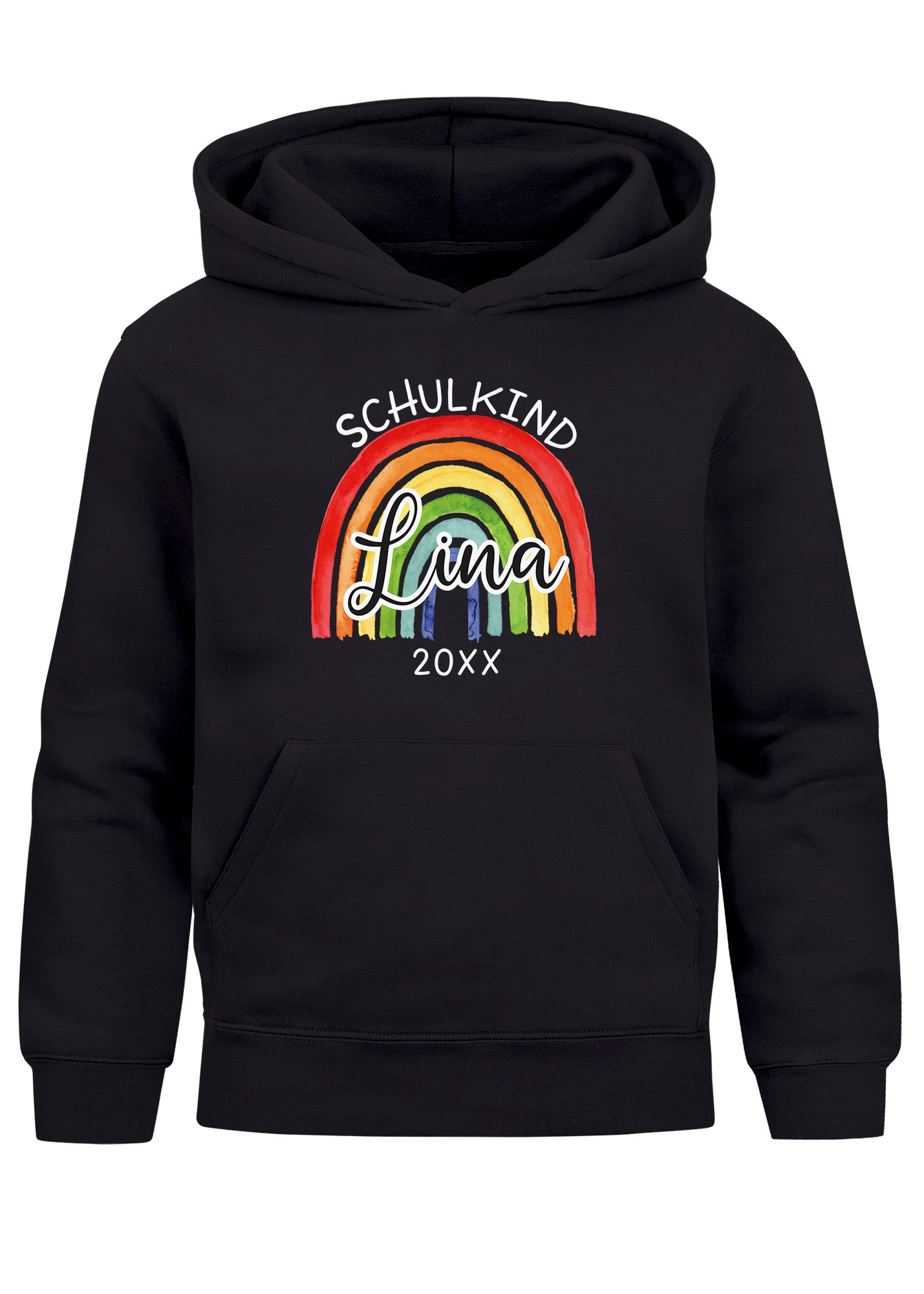 - Mit Name und buntem Regenbogen-Print wird dieser Mädchen-Hoodie zum persönlichen Highlight der Einschulung. Unter "Jetzt anpassen" den Namen/Einschulungsjahr eingeben und Kinderhoodie bedrucken lassen