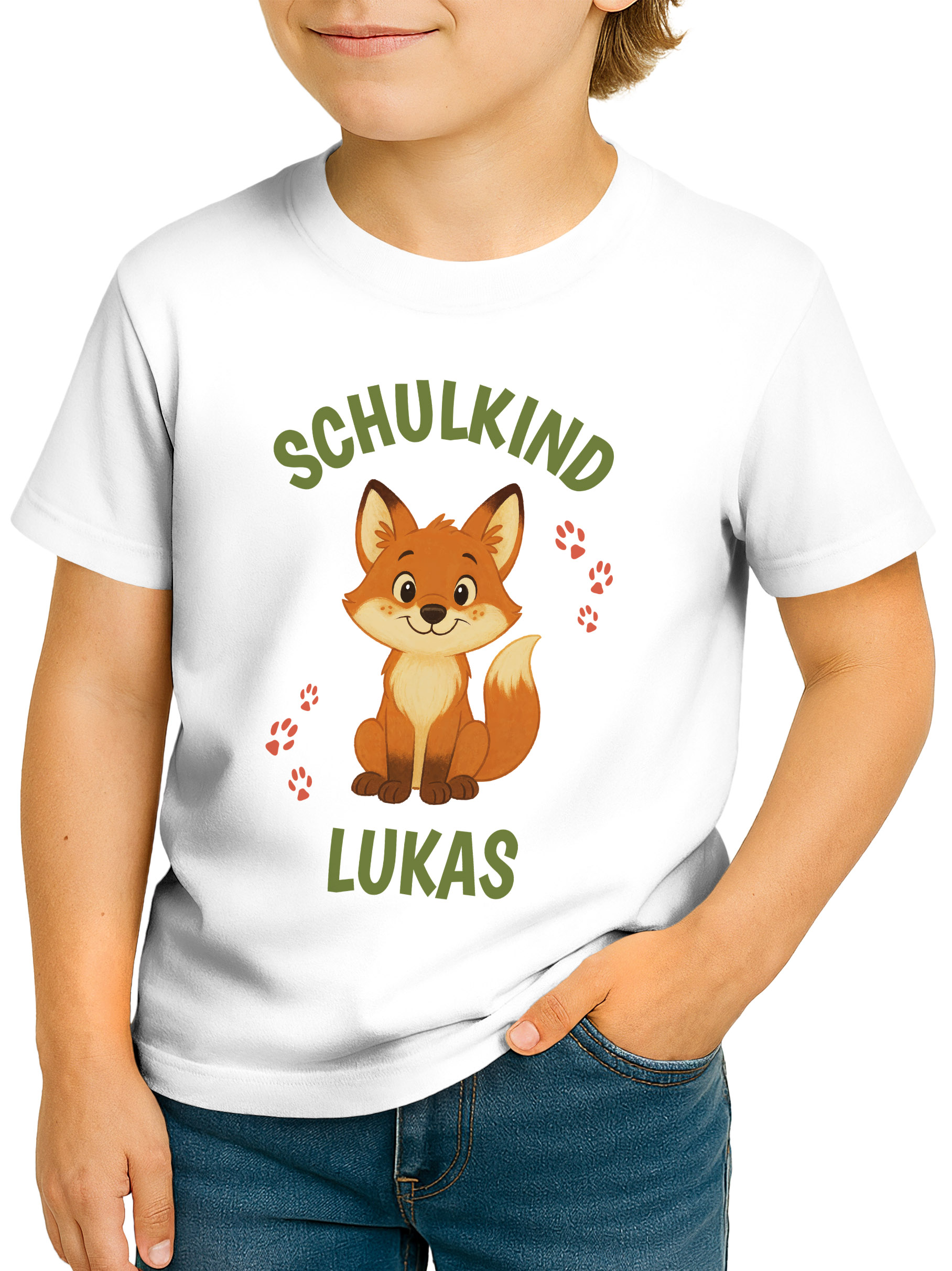 Kinder Jungen T-Shirt Aufschrift Schulkind mit Name personalisiert Motivshirt Löwe Fuchs Geschenkidee Einschulung 2026 SpecialMe®