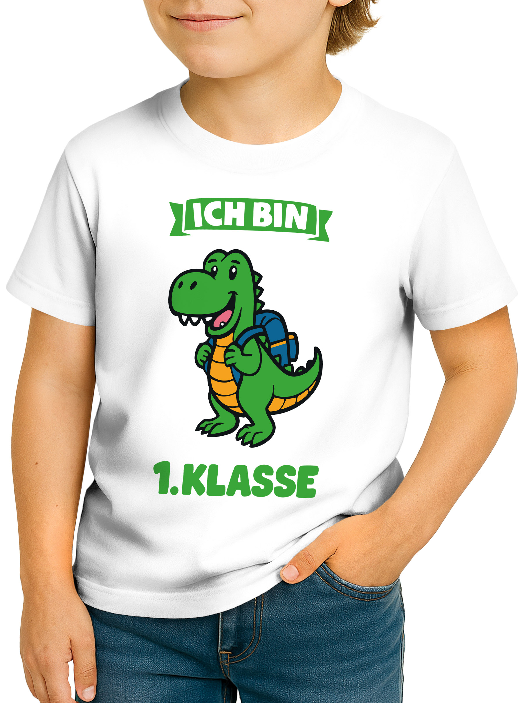 - Drei Dinos – ein Ziel: Schulabenteuer! Ob T-Rex, Triceratops oder Stegosaurus – in dieser T-Shirt-Kollektion für Erstklässler findet jedes Kind seinen Lieblings-Dino. Ein tolles Outfit für stolze Schulanfänger mit Rucksack und Entdeckergeist