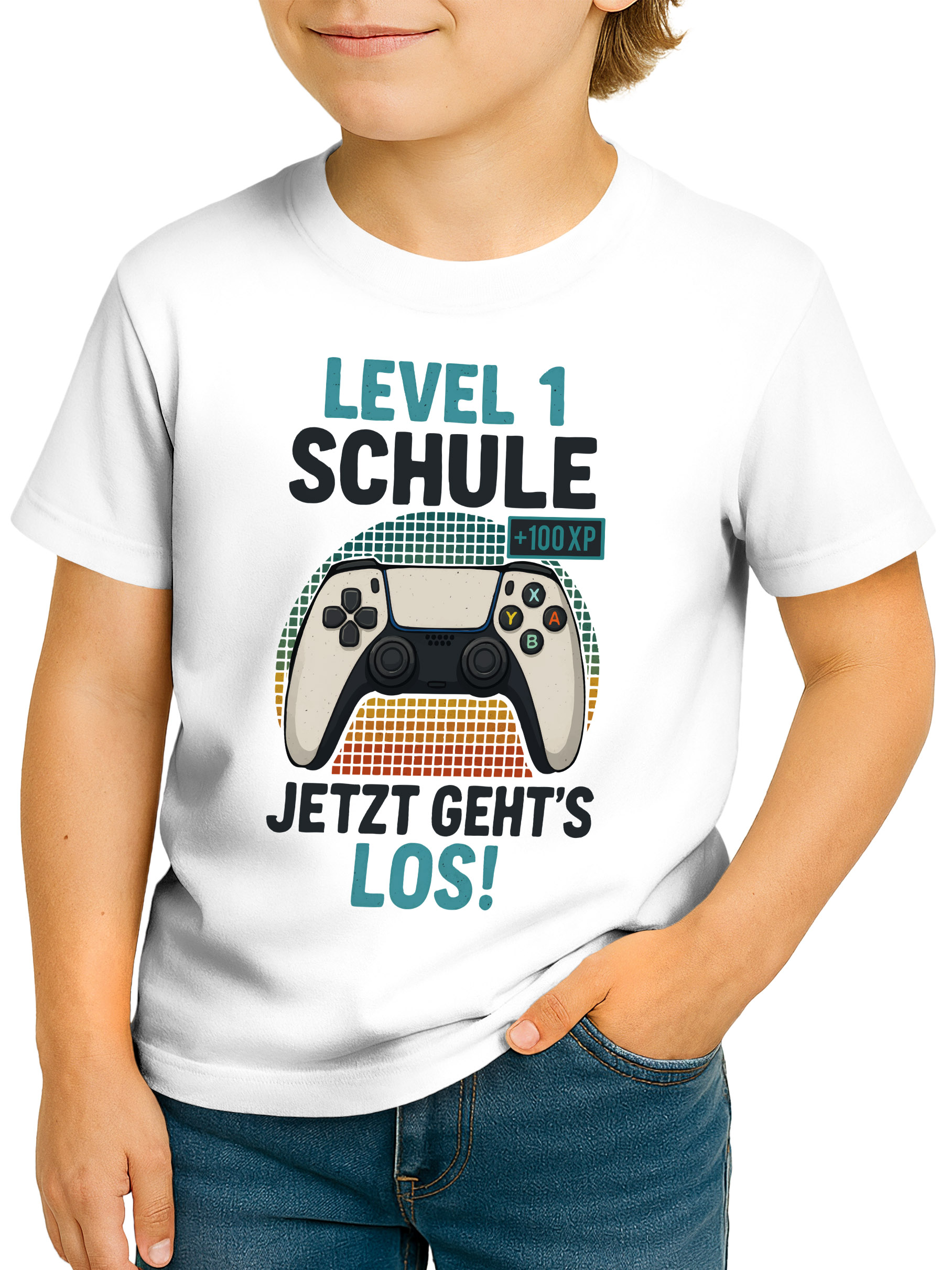 - Level 1: Schule – Start frei für kleine Zocker! Das perfekte Shirt für kleine Spieler! Mit Controller-Grafik, coolem Schriftzug und Gaming-Optik ist dieses Einschulungs-T-Shirt für Jungen ein echter Hingucker für die Feier oder Schultüte