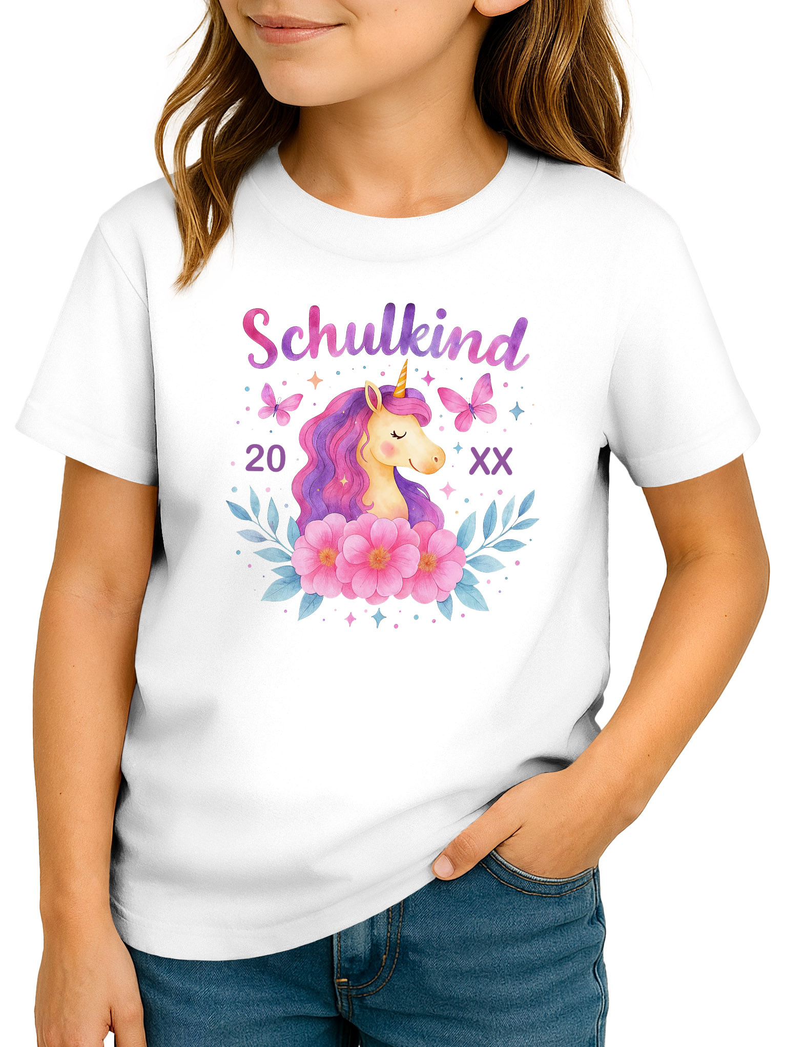 - Zauberhafter Schulstart mit Einhorn & Blütenpracht. Dieses liebevoll gestaltete Mädchen T-Shirt zur Einschulung mit verträumtem Einhorn, Schmetterlingen und Blumen ist das perfekte Outfit für kleine Schulanfängerinnen – ideal für den ersten Schultag, Einschulungsfeier oder als Geschenk zur Schultüte.