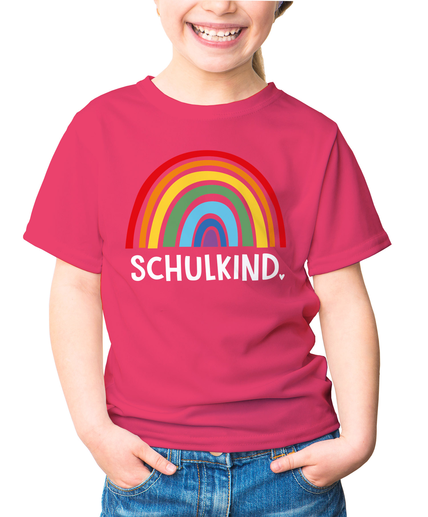 - Süßes Einschulungsshirt für Mädchen. Mit dem bunten Regenbogen und Schriftzug "Schulkind" im Skandi-Style ist das niedliche Shirt ein toller Eyecatcher und ein perfektes Outfit für den ersten Schultag