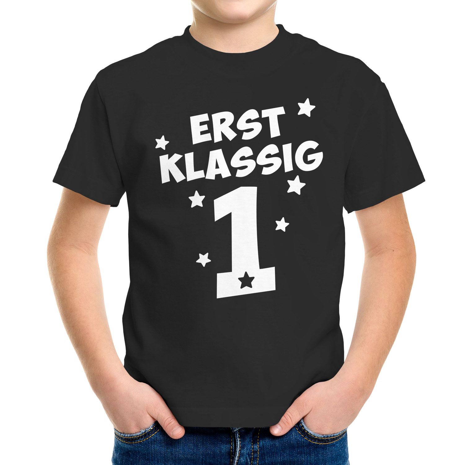 - Zum 1. Schultag braucht der stolze Schultüten-Träger natürlich auch ein passendes Kindershirt mit Aufdruck! So wie dieses coole Einschulungsshirt mit Schrift "Erstklassig" und der Zahl 1. Damit wäre dann alles für die Einschulung beisammen und ein erfolgreicher Schulstart ist garantiert