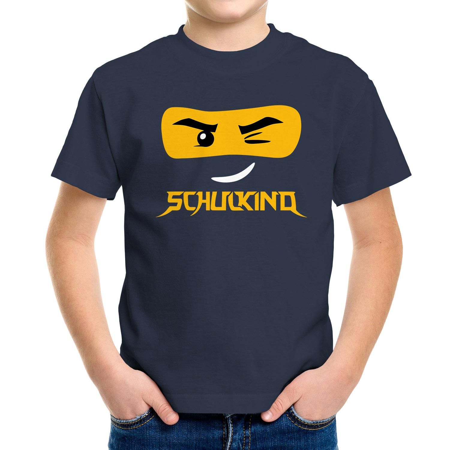 - Cooles Kinder T-Shirt für Jungen zur Einschulung/Schulanfang - Motiv: Ninja Gesicht