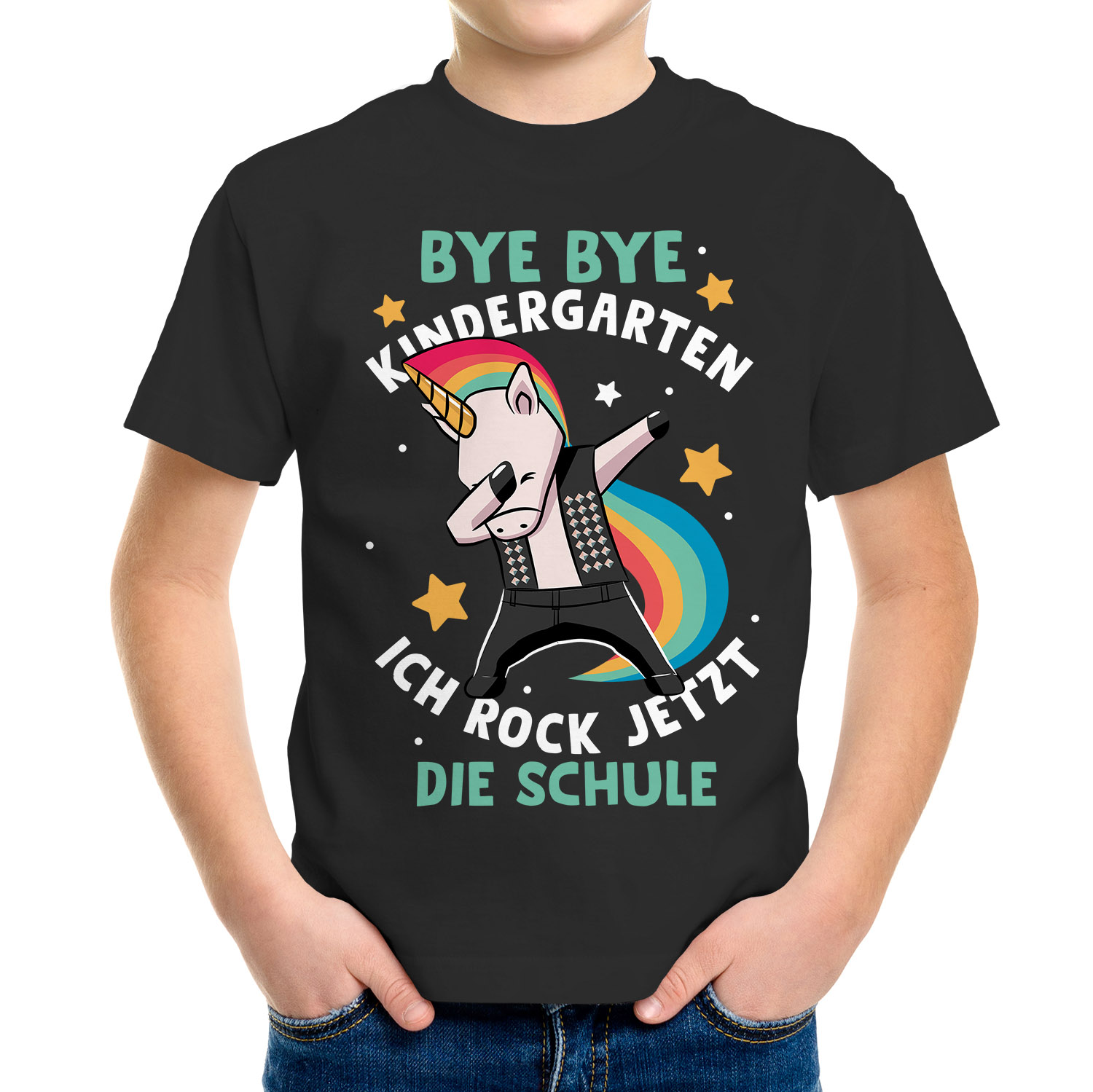 - Bye Bye Kindergarten ich rock jetzt die Schule - Cooles Shirt zur Einschulung mit Einhorn Regenbogen und Spruch Motiv
