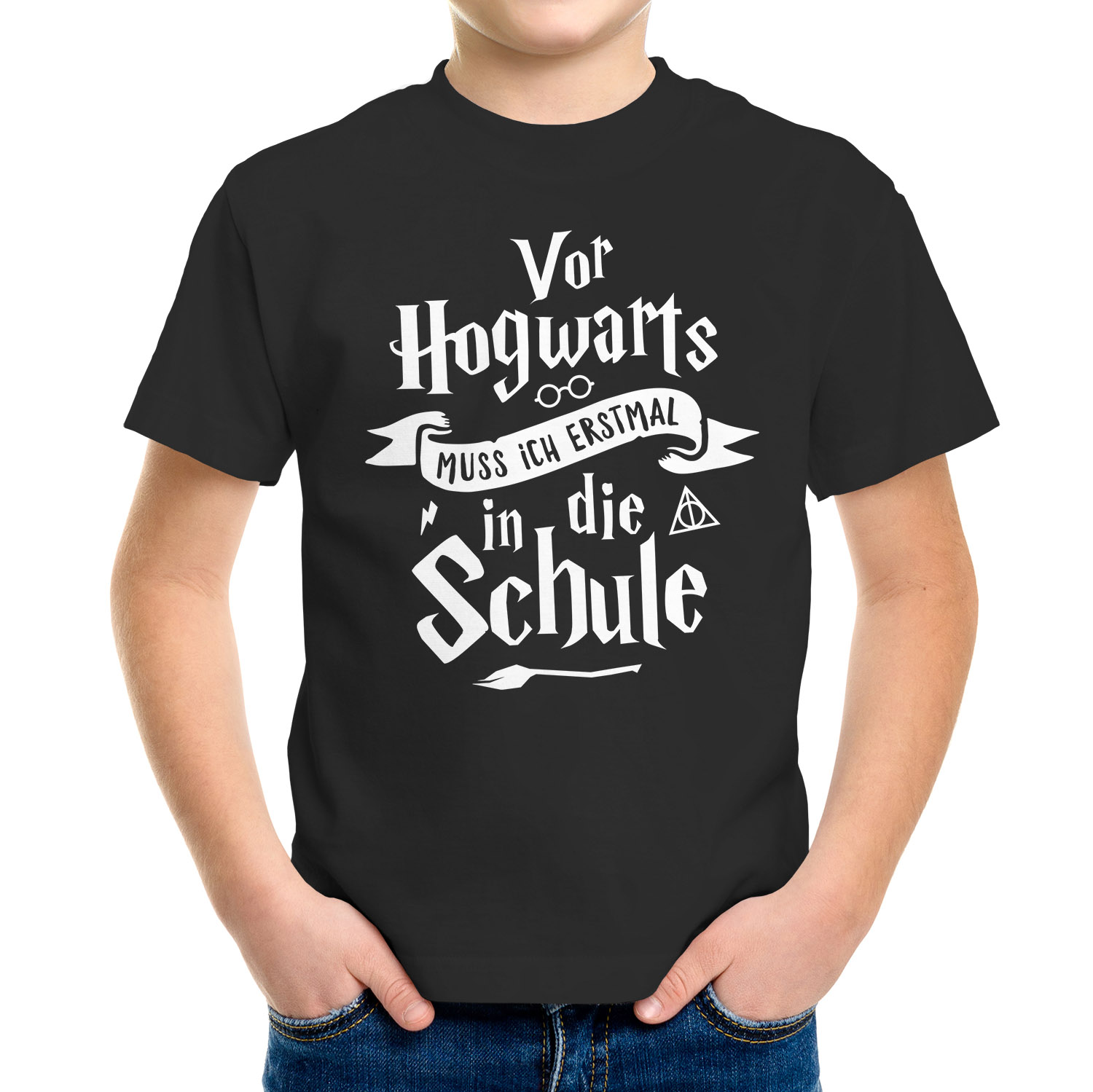 - Cooles T-Shirt Geschenk für kleine Zauberer zur Einschulung mit Spruch "Vor muss ich erstmal zur Schule"