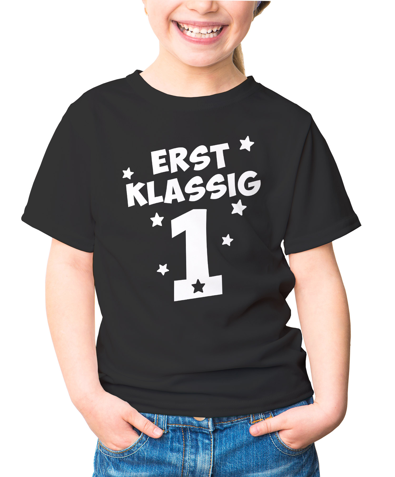 - Zum 1. Schultag braucht die stolze Schultüten-Trägerin natürlich auch ein passendes Kindershirt mit Aufdruck! So wie dieses coole Einschulungsshirt mit Schrift "Erstklassig" und der Zahl 1. Damit wäre dann alles für die Einschulung beisammen und ein erfolgreicher Schulstart ist garantiert