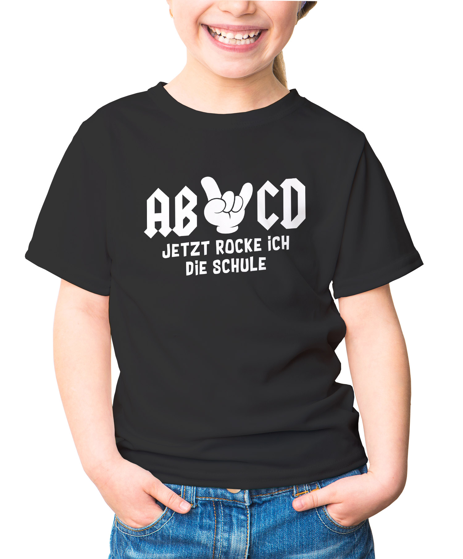 - Cooles Einschulungsoutfit für kleine Rockröhren. Mit dem witzigen Spruch "Jetzt rocke ich die Schule", Metalhand und Schriftzug AB CD ist ein spektakulärer Auftritt auf der Schulbühne garantiert. Papa aufpassen! Die ersten Verehrer stehen schon Schlange