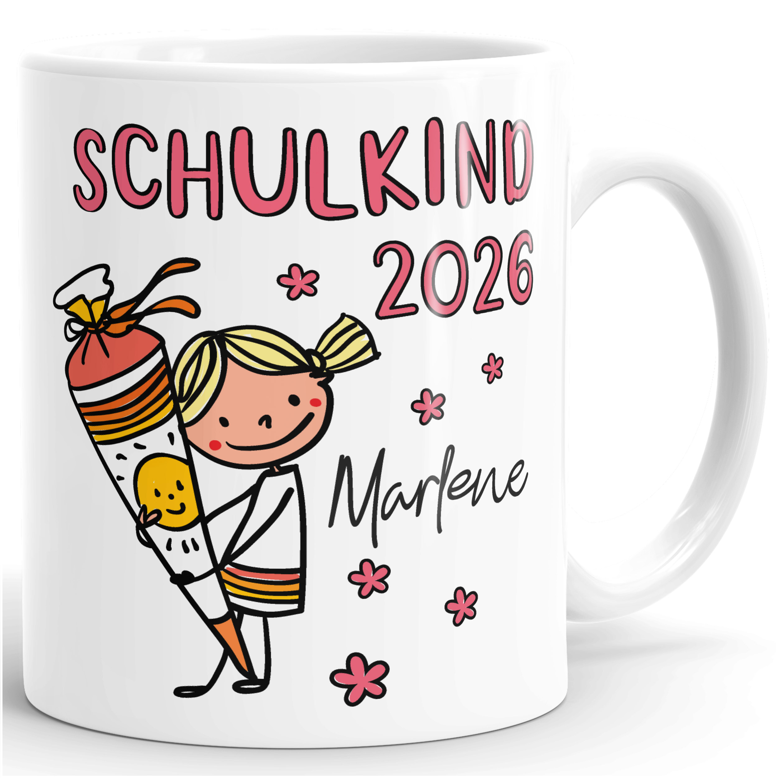 - Ein niedliches kleines Geschenk zur Einschulung 2026 ist diese süße Tasse mit Strichmännchen und Schultüte. Personalisierbar mit dem eigenen Namen und dem Jahr der Einschulung wird sie sicher ganz schnell die neue Lienlingstasse der stolzen kleinen Erstklässler