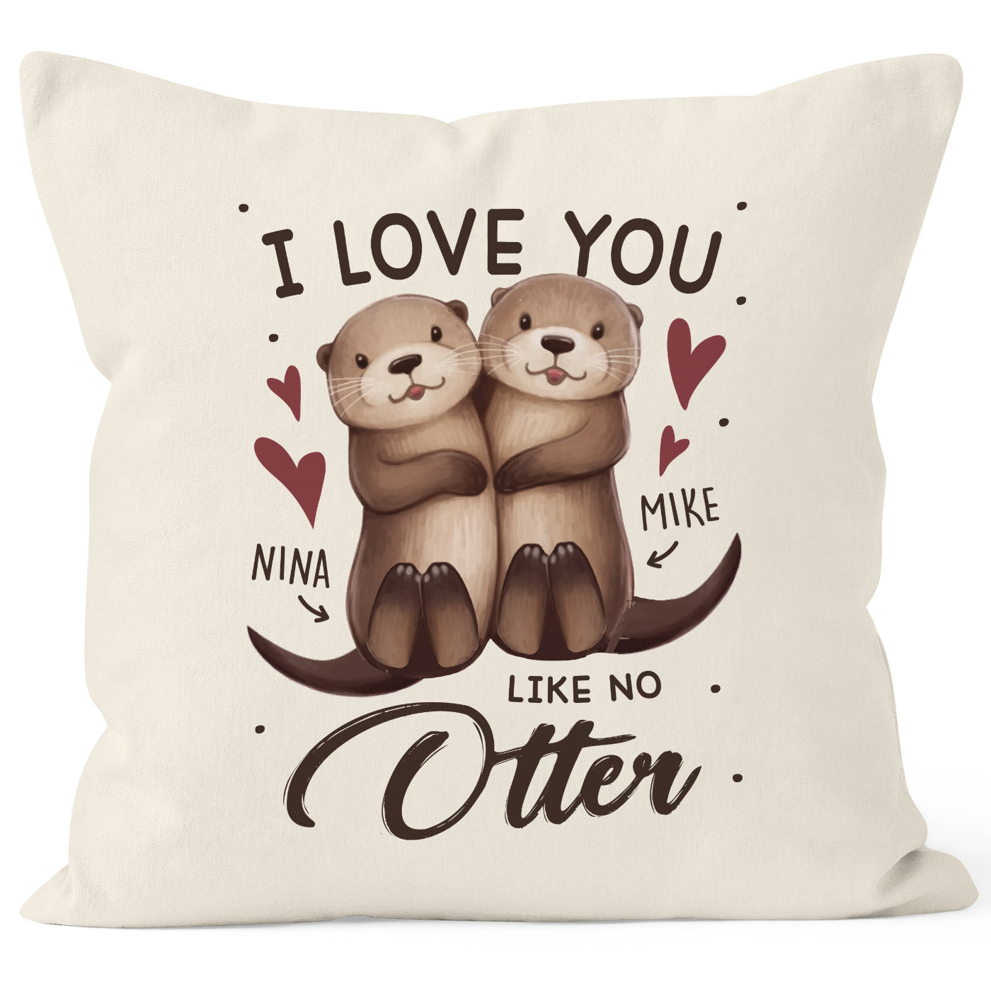 - Der Kissenbezug aus Baumwolle mit süßem Otter-Pärchen ist das perfekte Liebesgeschenk für Mann und Frau, Freund oder Freundin, Herzensmensch und Lieblingsperson. Personalisierbar mit euren eigenen Namen ist diese Kissenhülle eine süße Liebeserklärung