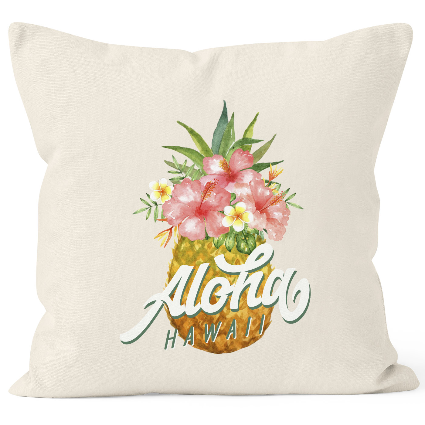 - herrlich, sommerlicher Kissenbezug mit tropischem Ananas Motiv, tropischem Blüten und "Aloha Hawaii" Schriftzug aus der aktuellen Autiga® Kollektion
