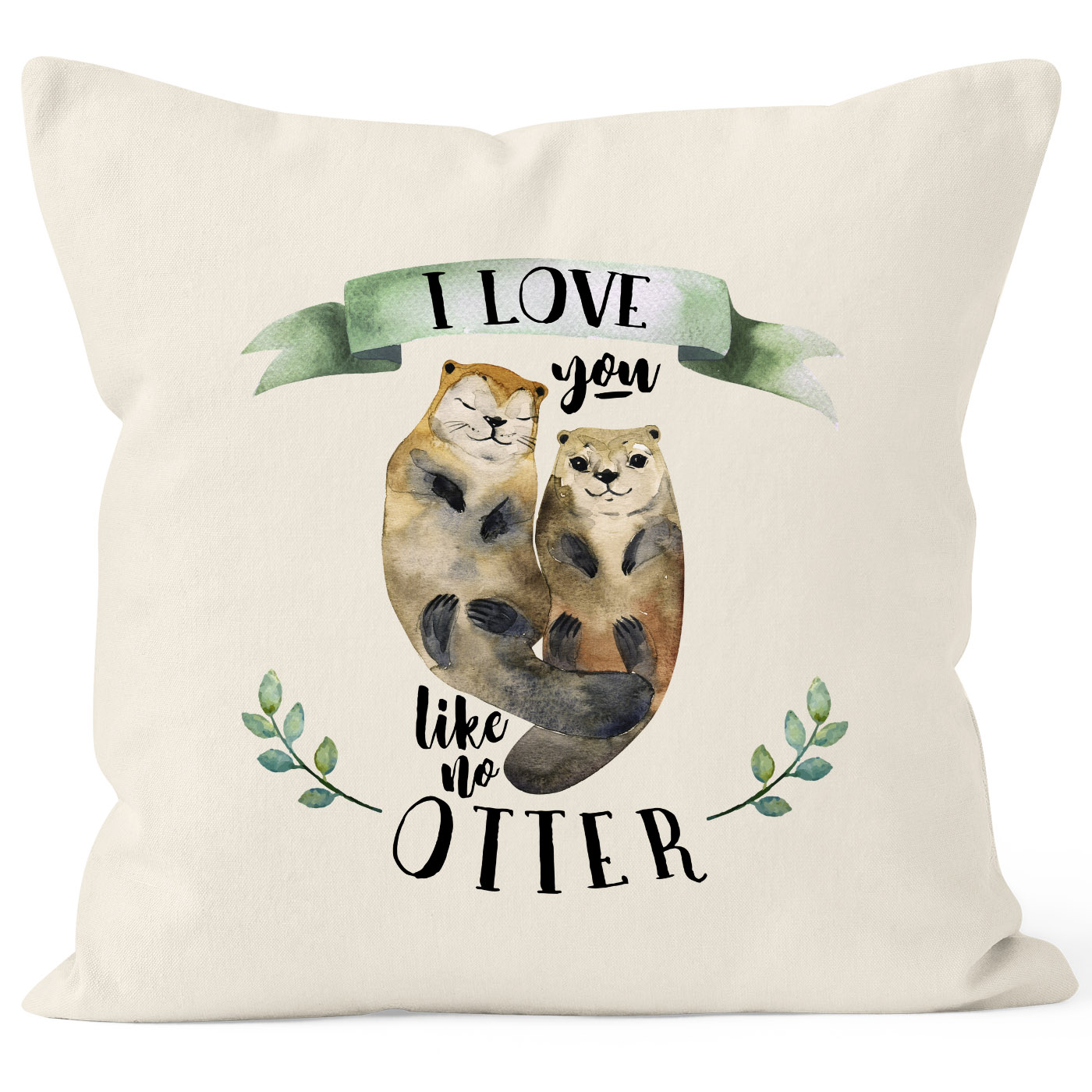 - zauberhafte Kissenhülle für Verliebte: Kissenbezug mit zwei verliebten Ottern und "I love you like no otter" Spruch aus der aktuellen Moonworks® Kollektion