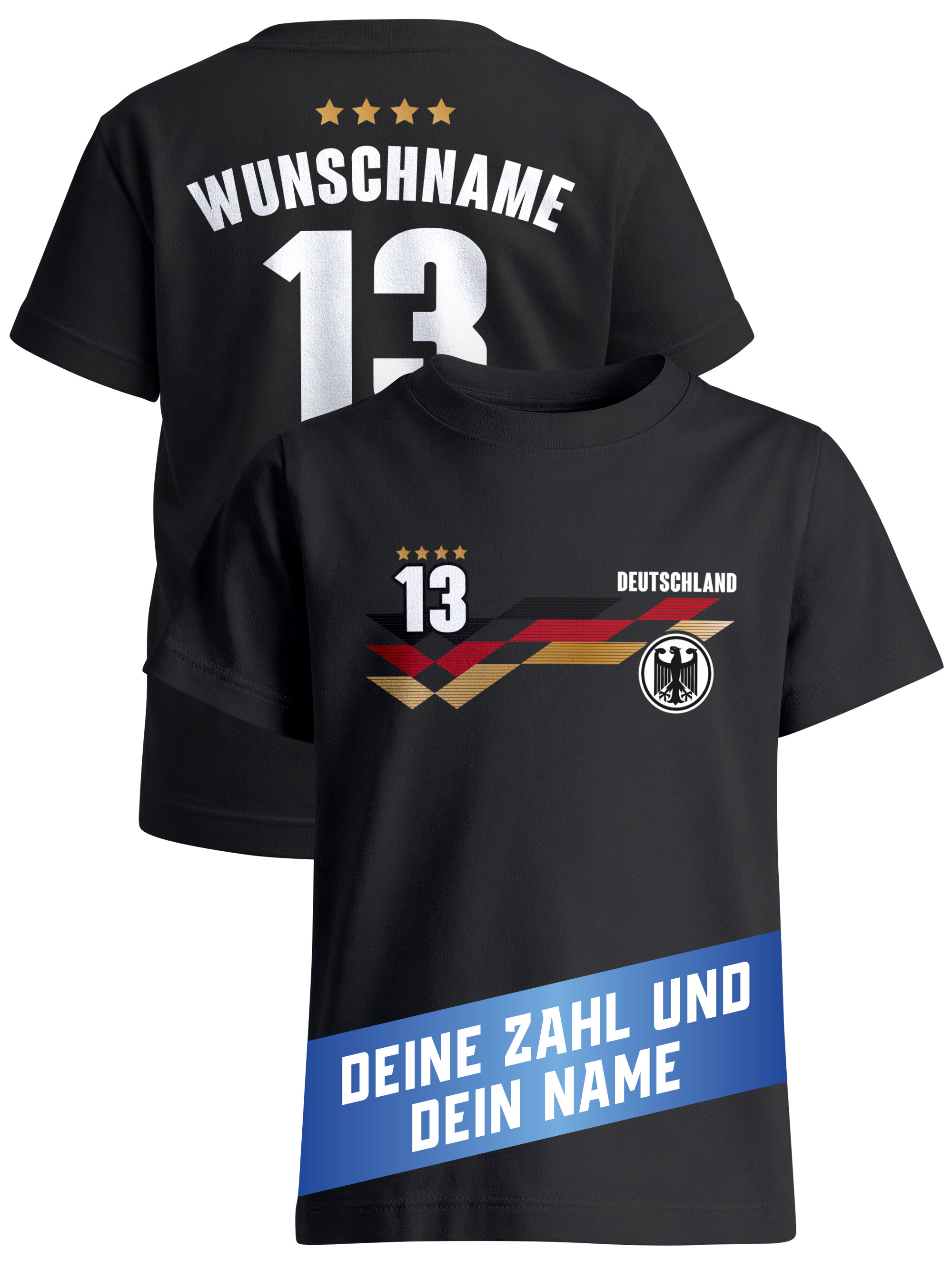 Mit diesem personalisierten Fußball T-Shirt im coolen Trikot-Style wird jeder Junge zum Star auf dem Platz. Das Shirt erinnert an ein echtes Fußballtrikot – mit sportlichem Frontdesign und individuellem Druck auf der Rückseite. So entsteht im Handumdrehen ein ganz persönliches Fußball Fan-Shirt für Kinder. Egal ob Bolzplatz, Schulhof, Stadionbesuch oder Public Viewing: Dieses Shirt macht kleine Fußballfans stolz wie echte Nationalspieler. Der beidseitige Druck sorgt für einen authentischen Trikot-Look. Vorne sportliches Fußballmotiv, hinten dein Wunschname und deine Nummer – genau so, wie man es von echten Fußballtrikots kennt. Ein personalisiertes Kinder T-Shirt, das garantiert Aufmerksamkeit bekommt.