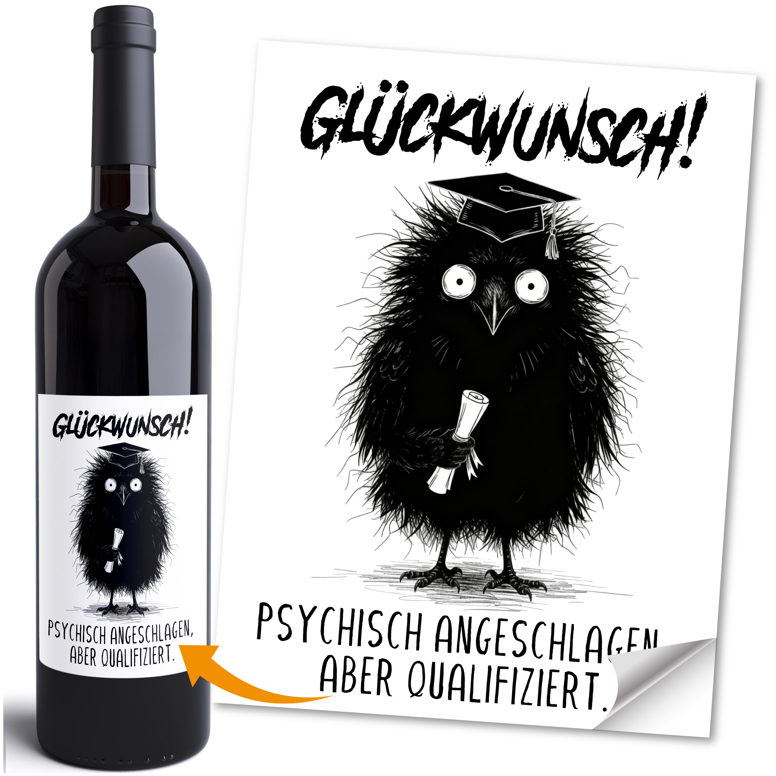 Der Weg zum Abschluss ist selten entspannt: Prüfungsstress, schlaflose Nächte und unzählige Lernstunden. Genau deshalb trifft dieses MoonWorks Weinetikett den Nagel auf den Kopf. „Psychisch angeschlagen, aber qualifiziert.“ Ein frecher Glückwunsch für alle, die ihre Prüfung bestanden haben. Ideal als humorvolles Geschenk zum Studienabschluss, Bachelor Abschluss Geschenk oder als lustige Überraschung zum bestandenen Examen.