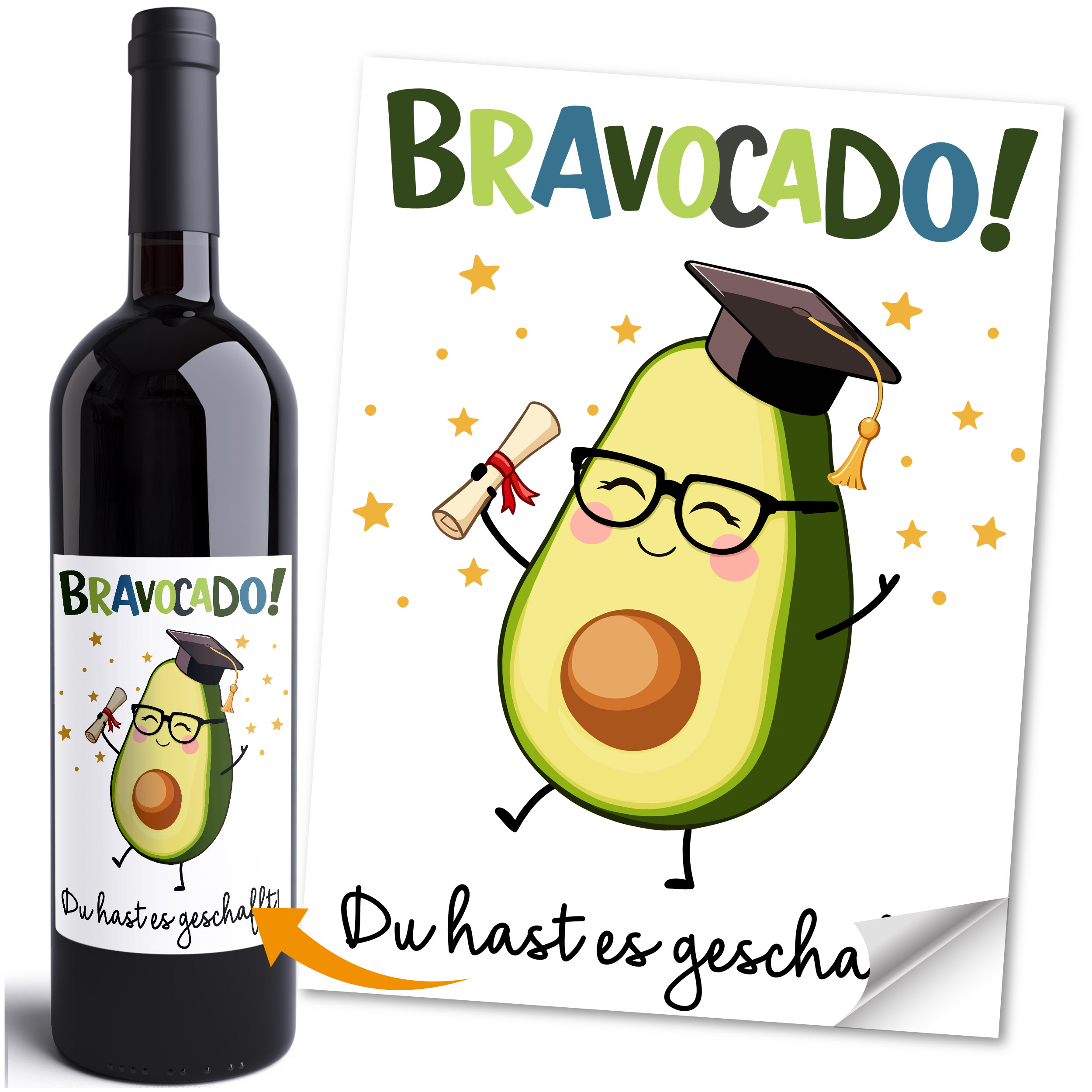 Du suchst ein originelles Geschenk zum Abschluss oder zur bestandenen Prüfung? Dieses selbstklebende Weinetikett macht aus jeder Flasche Wein ein persönliches und witziges Präsent. Einfach auf eine Weinflasche kleben und schon entsteht ein kreatives Geschenk zum Bachelor, zum Studienabschluss oder als kleines „Du hast es geschafft“-Geschenk. Perfekt als Abschlussgeschenk für Studenten, Absolventen, Freunde oder Kollegen – egal ob Bachelor, Master oder Examen bestanden.